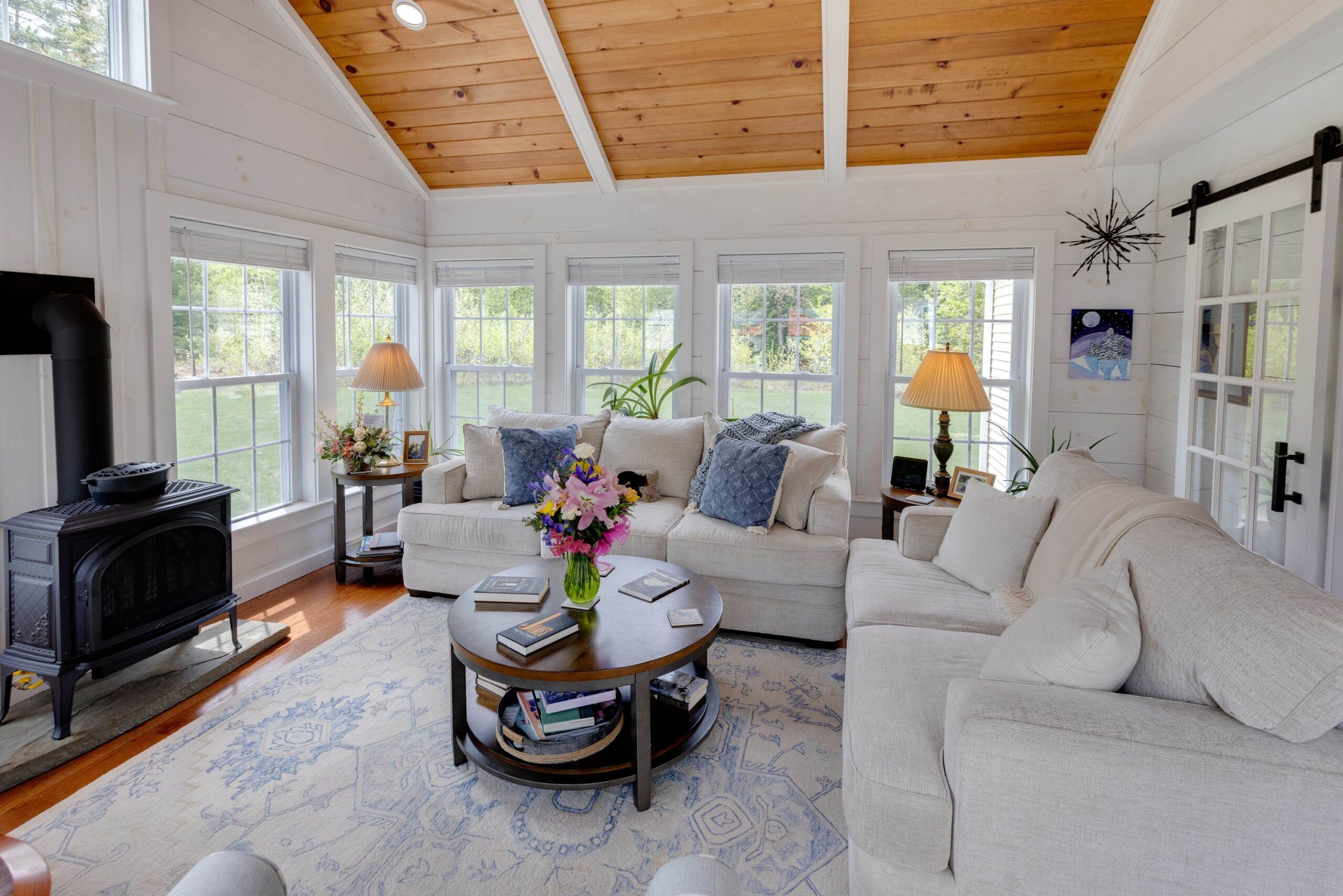 Fantastic new price! Pride of ownership exudes from this Cape-style Mountain home. Outstanding curb appeal and perched on a 5-acre private lot with lush green grass, landscaping, Mount Moosilauke views, and frontage on the Beebe River. The dynamic floor plan includes a large dining room, a home office, and a generous living room with a gas fireplace, which opens to a stunning new light and bright sunroom. Two large first-floor bedrooms provide single-level living and ensuite convenience. The renovated kitchen offers newer appliances, flooring, and beautiful leathered granite counters. The 2nd floor provides ample space for family and guests, and features a new family room and bedroom. A detached, heated two-car garage is perfect for snowmobiles, boats, and other vehicles. New and highly efficient geothermal heating and cooling with a hybrid heat pump hot water heater, along with a whole-house generator, make this property the envy of the neighborhood. Sit back and relax with your morning coffee on the front farmer's porch. Close to both the lakes & mountains for four seasons of NH fun.