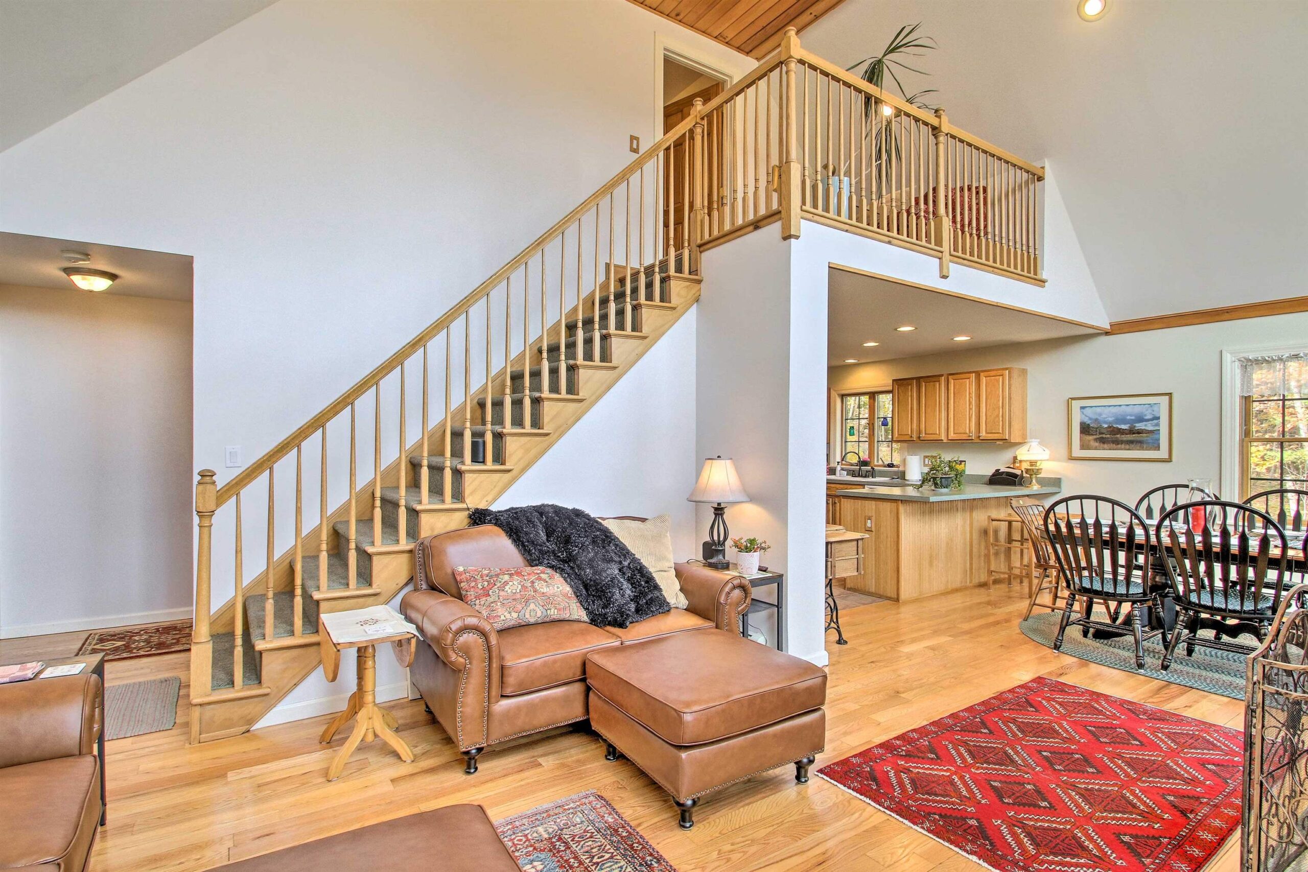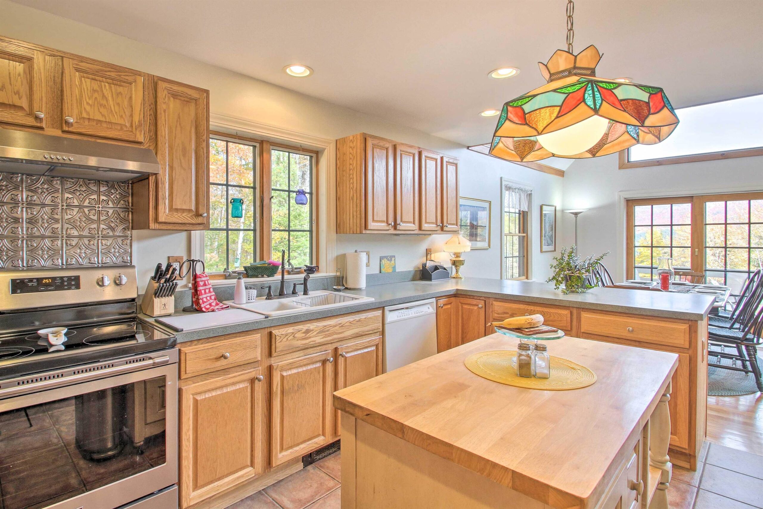 WHITE MOUNTAIN VIEWS GALORE!!! See Cannon, the Twin Mountains and the Kinsman Range. This delightful furnished mtn retreat located on Valley View Road in Easton, on 5.03 acres, will definitely make you smile. This well-maintained custom-designed home feels like home as soon as you enter. The open concept living room/dining room/kitchen arrangement with a gas fireplace will be suitable for family entertaining. The kitchen has a center island with drawers & has plenty of counter space, cabinetry & storage. Access to the deck from the living room/kitchen area has stunning views of the White Mountains. A first-floor laundry off the foyer is quite convenient along with direct access into the foyer from the 2-bay garage. First floor bedroom w/ensuite bathroom and walk in closet. Second floor large bedroom also w/ensuite bath and love seat reading area. Plenty of bedroom closets for storage. The full, walk-out, windowed basement has been renovated into another bedroom w/ensuite bathroom and a huge family room with the same stunning views to enjoy. The basement is also plumbed for another kitchen setup if you so desire. The Hearthstone gas stove will make this spacious area comfortable and cozy in the winter months. Your family will definitely be in heaven with this spectacular home in the low tax town of Easton. Are you ready for the biking, hiking, fishing, snowshoeing, skiing, that the n. country has. OPEN HOUSE - Saturday, 10/11 - 10am to 12pm and Sunday, 10/12 - 12pm to 2pm.