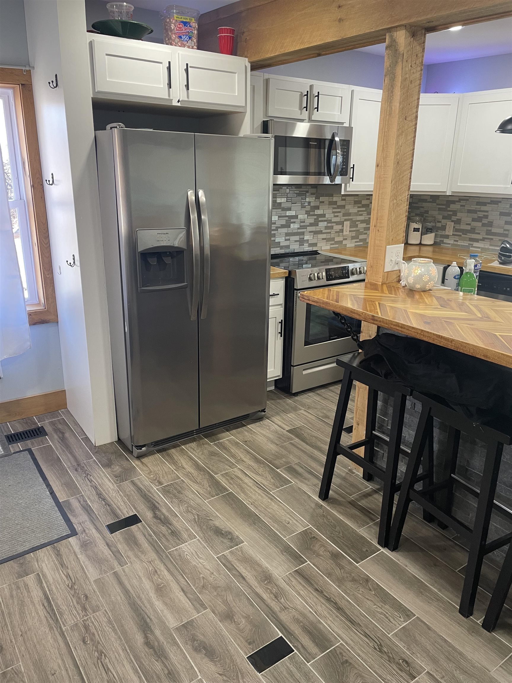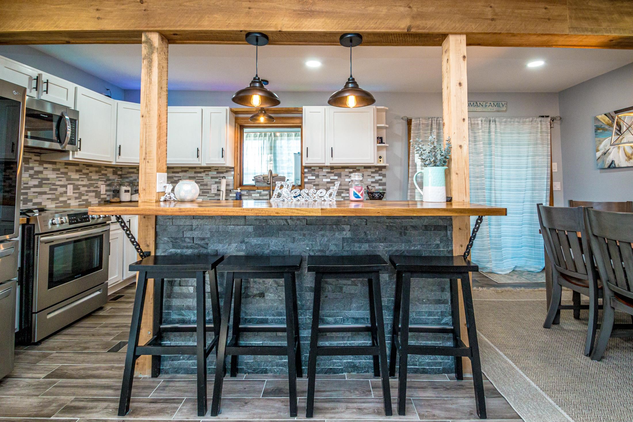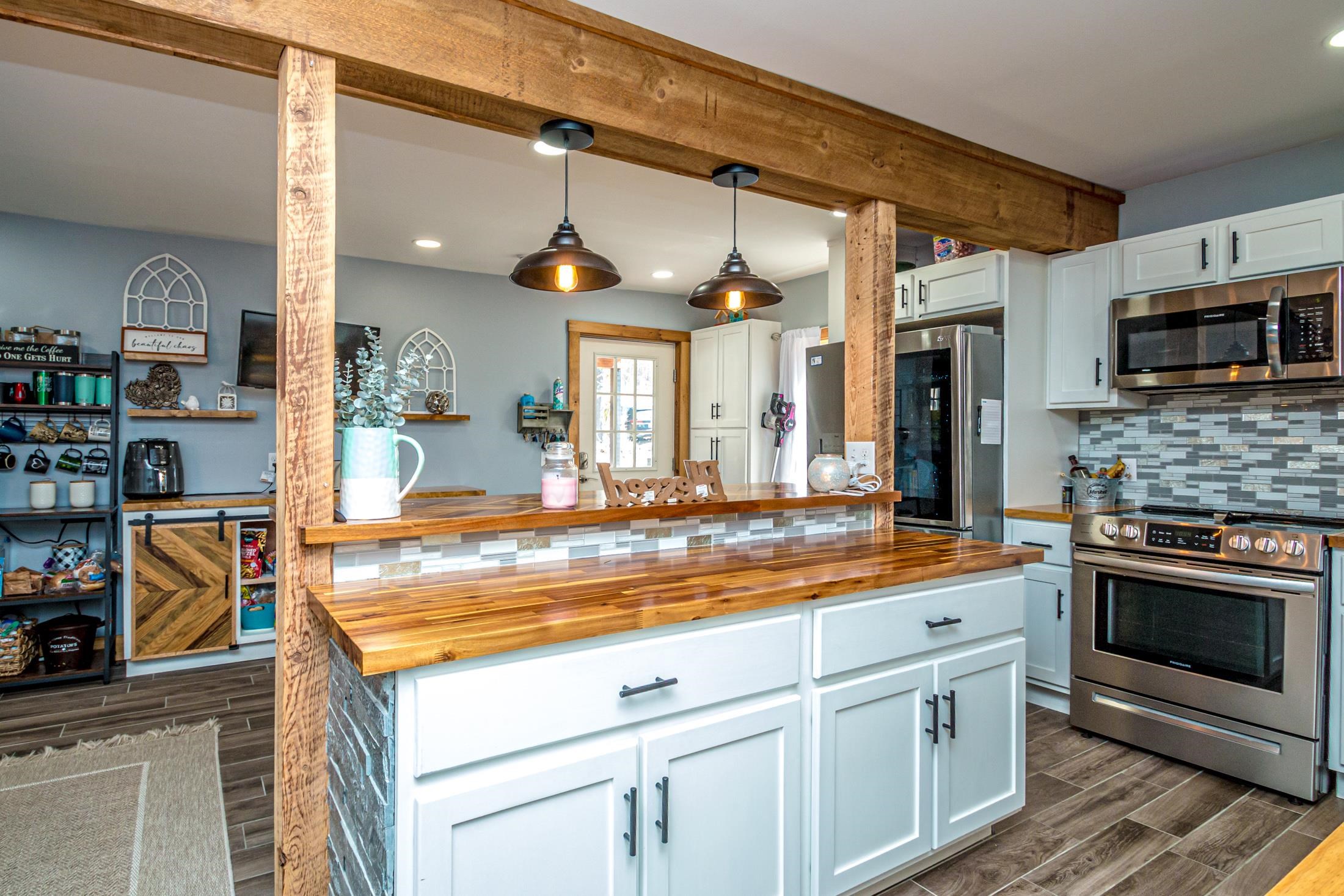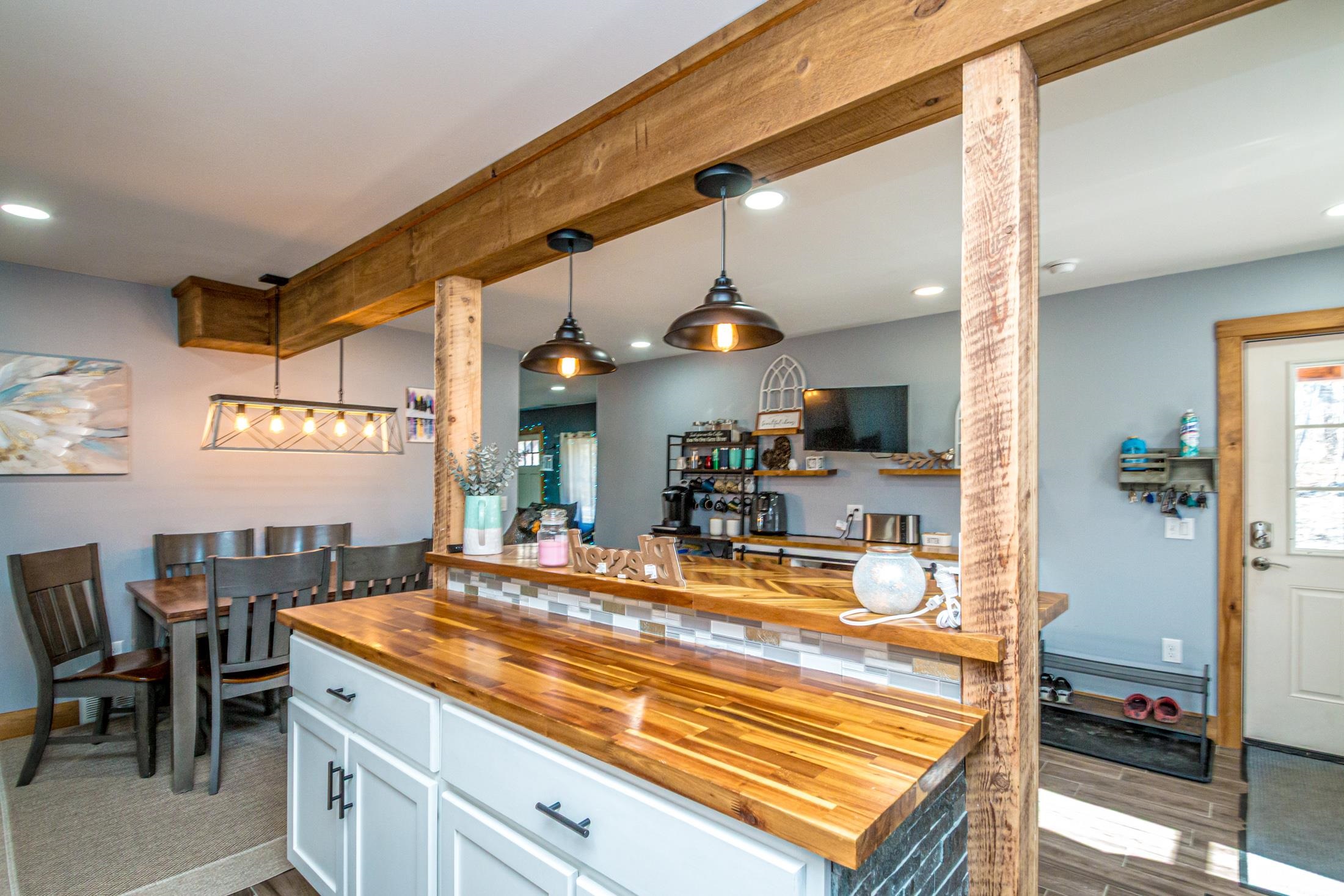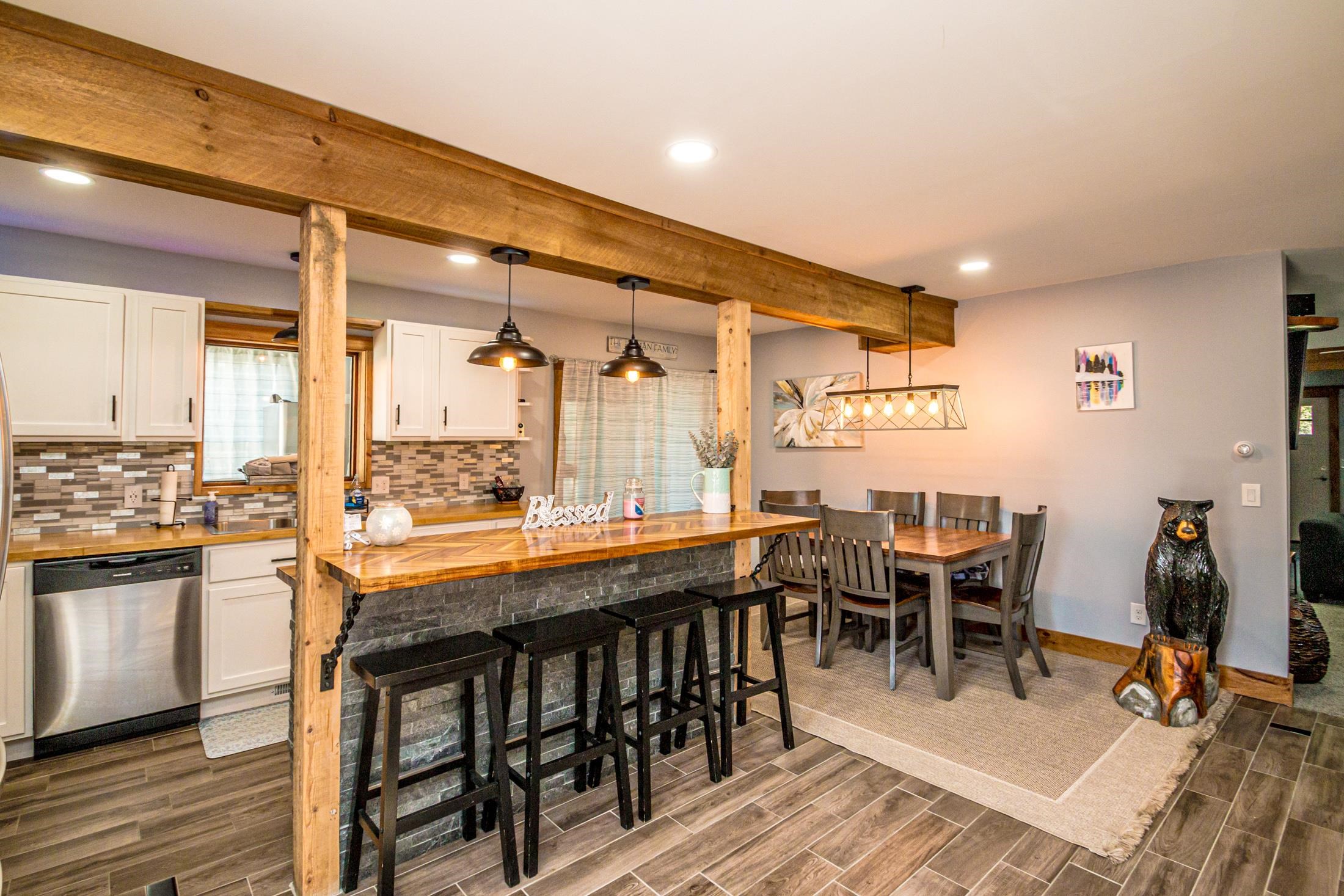 HUGE price reduction! Do not miss your opportunity to own this gorgeous, fully renovated 3-bedroom, 2.5 bath home sited on a +/- .67 acre lot. The home was taken down to the studs and everything was replaced, including insulation, wiring, plumbing, heating, walls, flooring, windows, cedar shake siding (with weaved-in 9' moose), and the drilled well pump. The interior of the home was reimagined to keep the charm of the original time period, with exposed wooden beams to meld with modern comforts. Beautiful custom butcher block countertops and stainless steel appliances perfectly accent the well-laid-out kitchen, which offers plenty of cabinets and a productive workflow. You will find a large sunroom off the kitchen, which leads to the back deck with custom driftwood railings. The living room has a pellet stove and a propane fireplace (not connected) to supplement the heat and create a cozy ambiance. There are two large walk-in closets and a full bath to complete this level. Upstairs, you will find a primary en-suite with a half bath and two large bedrooms that all share a bath. The basement is accessed via a walkout lower door and has been spray foamed to maximize efficiency. A large wrap-around deck provides sitting areas and access on 3 sides of the house to take full advantage of the mountain view. A new 16' x 24' heated garage provides parking or a great place to have a workshop with storage above.