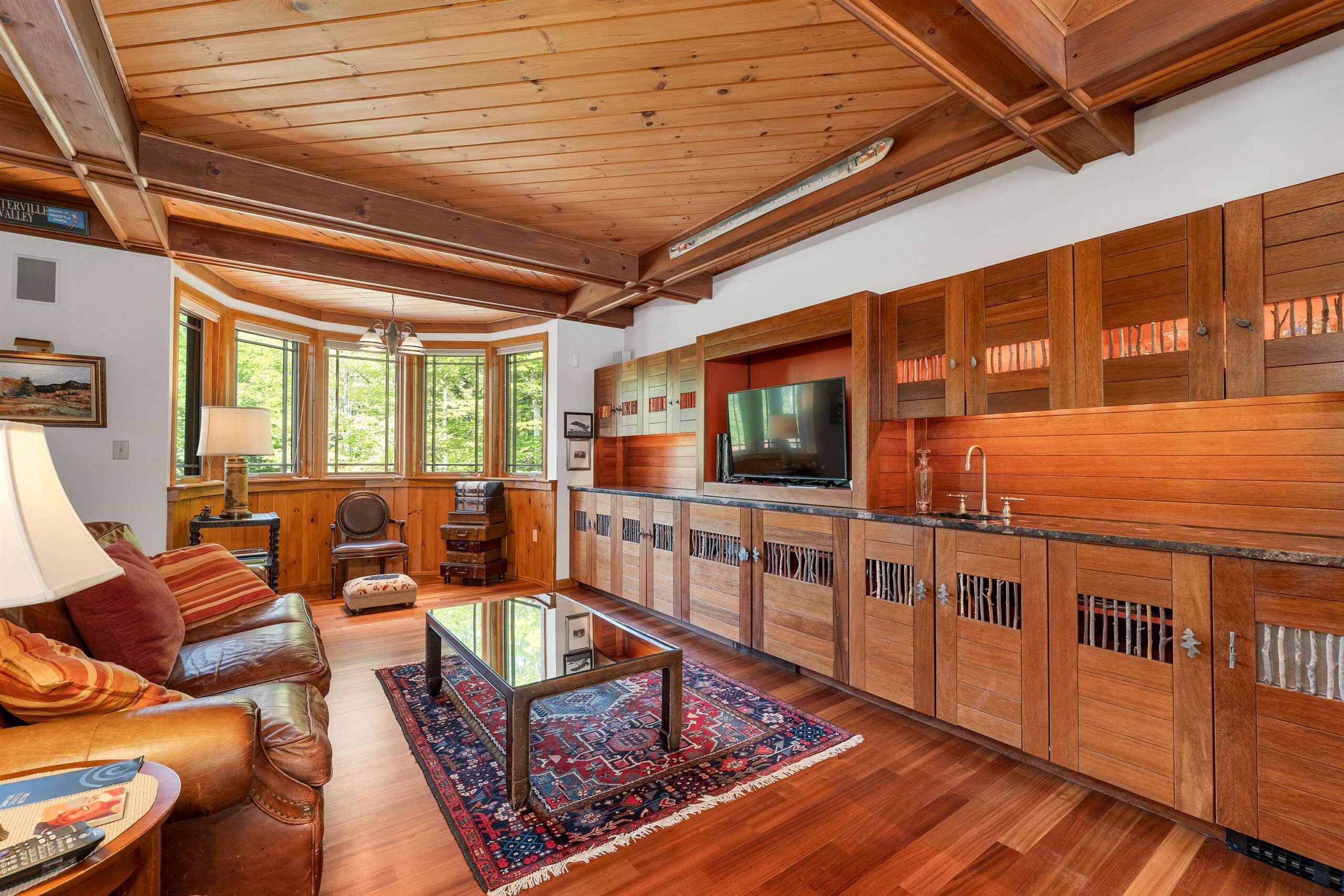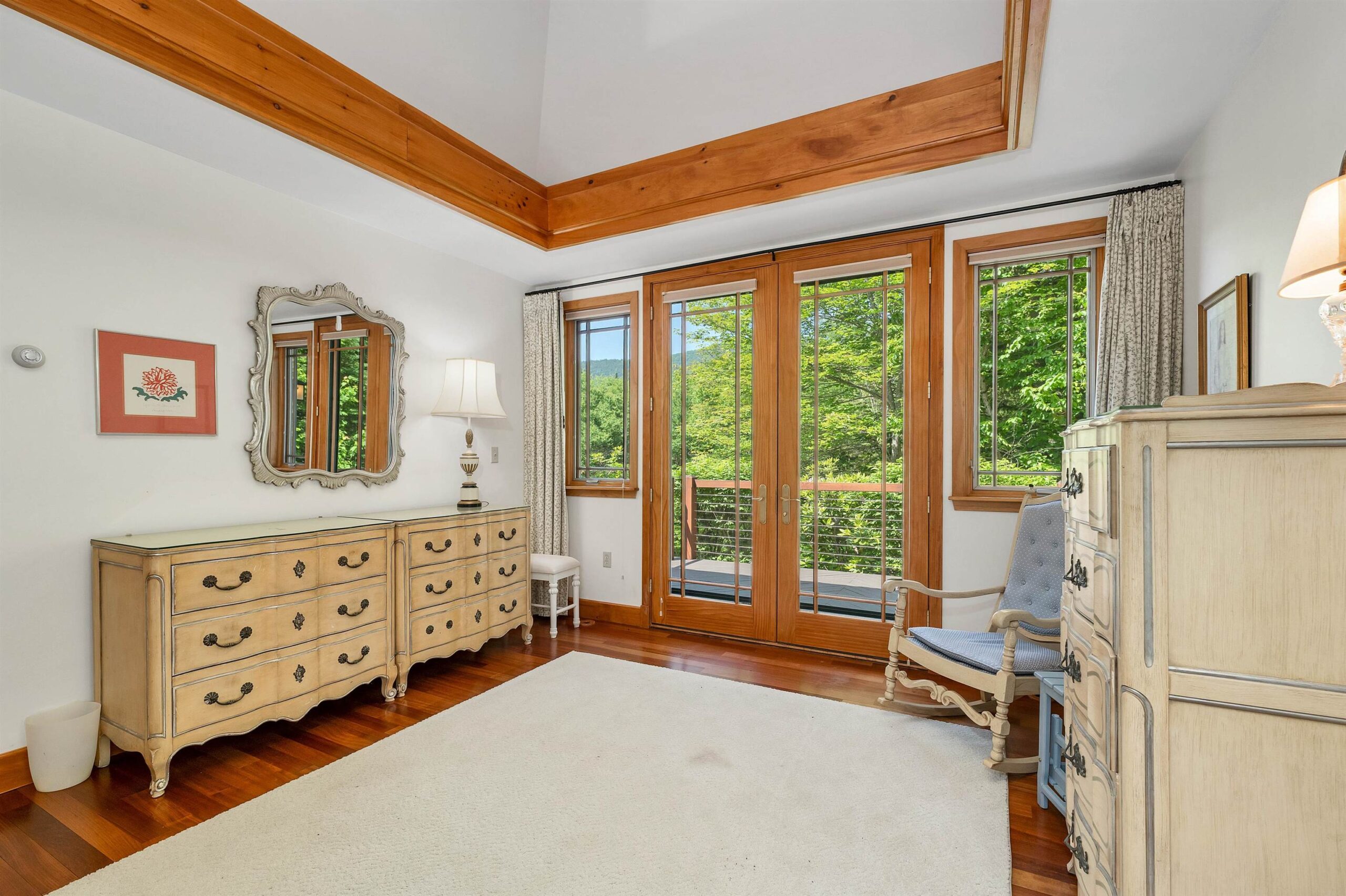 Rare opportunity to own a legacy property. Lovingly designed, exceptionally built craftsman-style home in Watervilleâs North End. The home is tucked in a 1.4-acre wooded parcel overlooking the West Branch River and National Forest. Mt. Tecumsehâs ski slopes provide a fitting backdrop and are minutes from front door to chairlift. Expansive windows soak in sunshine and views. Multiple decks and riverside patio are the perfect spots for entertaining and relaxing. Bold, beautiful wood elements are featured throughout, including natural wood doors, hand peeled birch log beams, log railings complemented by the organic shapes of twig balusters. Warm custom cabinetry and built-ins achieve perfect harmony with grand stone fireplaces. The kitchen features high-quality appliances, granite countertops and a dining nook overlooking the river. Multiple gathering spots encourage conversation, entertaining, playing and relaxing. The spacious floor plan includes 5 bedrooms and 4.5 baths. The primary suite is conveniently located on the main level and open to private decks. A garden level suite features a bedroom, kitchen, dining, living and game room. Laundry located on 1st and 2nd floors. Abundant storage including walk-in cedar closet and attached 2-car garage with room for your 4-season gear. While retaining its privacy and seclusion, the home is footsteps to multi-use trails, minutes to golf, tennis, athletic club, shopping, dining and ski resort. This is truly a must-see. See Video.