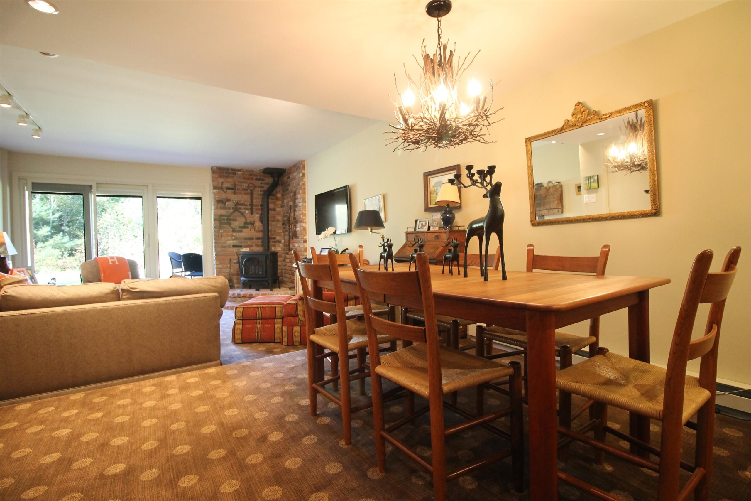 Description: Arguably one of the best locations in Waterville Valley! This 1,900+ sqft Tecumseh Townhouse offers a stunning view of both Mt. Tecumseh and Osceola with immediate XC/Hiking trail access in the back yard! Enter the condo through a mudroom entry to find an open floorplan with incredible updates throughout. The kitchen as been beautifully renovated with granite counter-tops, high end light and plumbing fixtures, stainless steel appliances, vinyl plank flooring and more. Adjacent to the breakfast bar is the living and dining area with high end carpets, gorgeous rustic chandelier and a cozy propane stove to enjoy while taking in the view. Just off the back of the condo you'll find a trex deck patio with a HUGE backyard that abutts the WV Community area, the Mad River and the entire network of trails. Head upstairs to to the large pimary suite with an attached renovated full bath and plenty of closet storage space. Bedroom 2 also on this level along with a full sized laundry area and another renovated full bathroom. Up one more flight of stairs to find an awesome 3rd Bedroom/2nd living room with one of the best views in ALL of Waterville Valley! This space is perfect as it also includes a fun sleeping loft that can sleep 4 and a 3/4 bath complete with a sauna which can make this space a bedroom suite if needed. Owners are WMAC memebers. This is a well run condo development with low fees and a great location in WV with everything just a short walk away. You'll love it here!