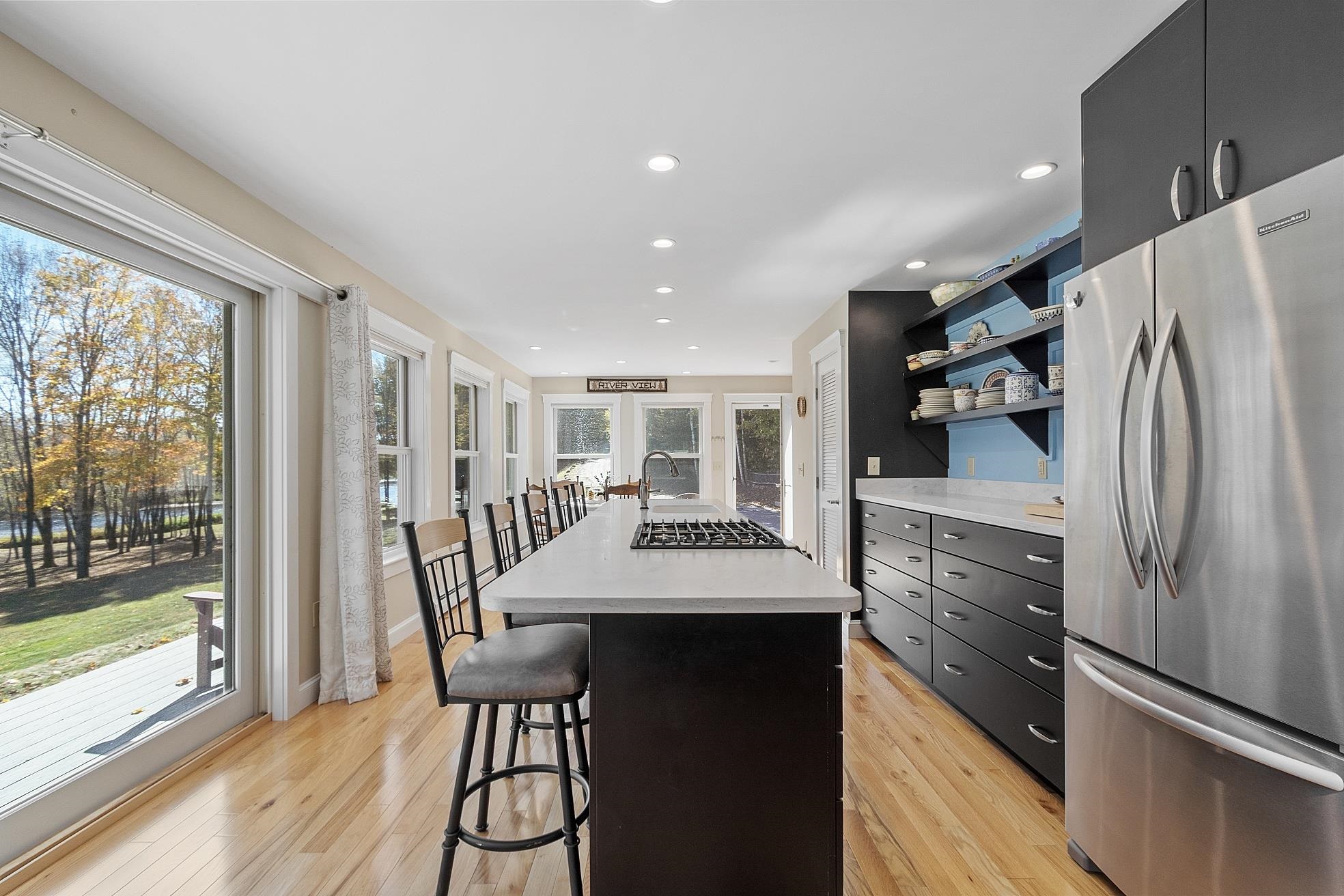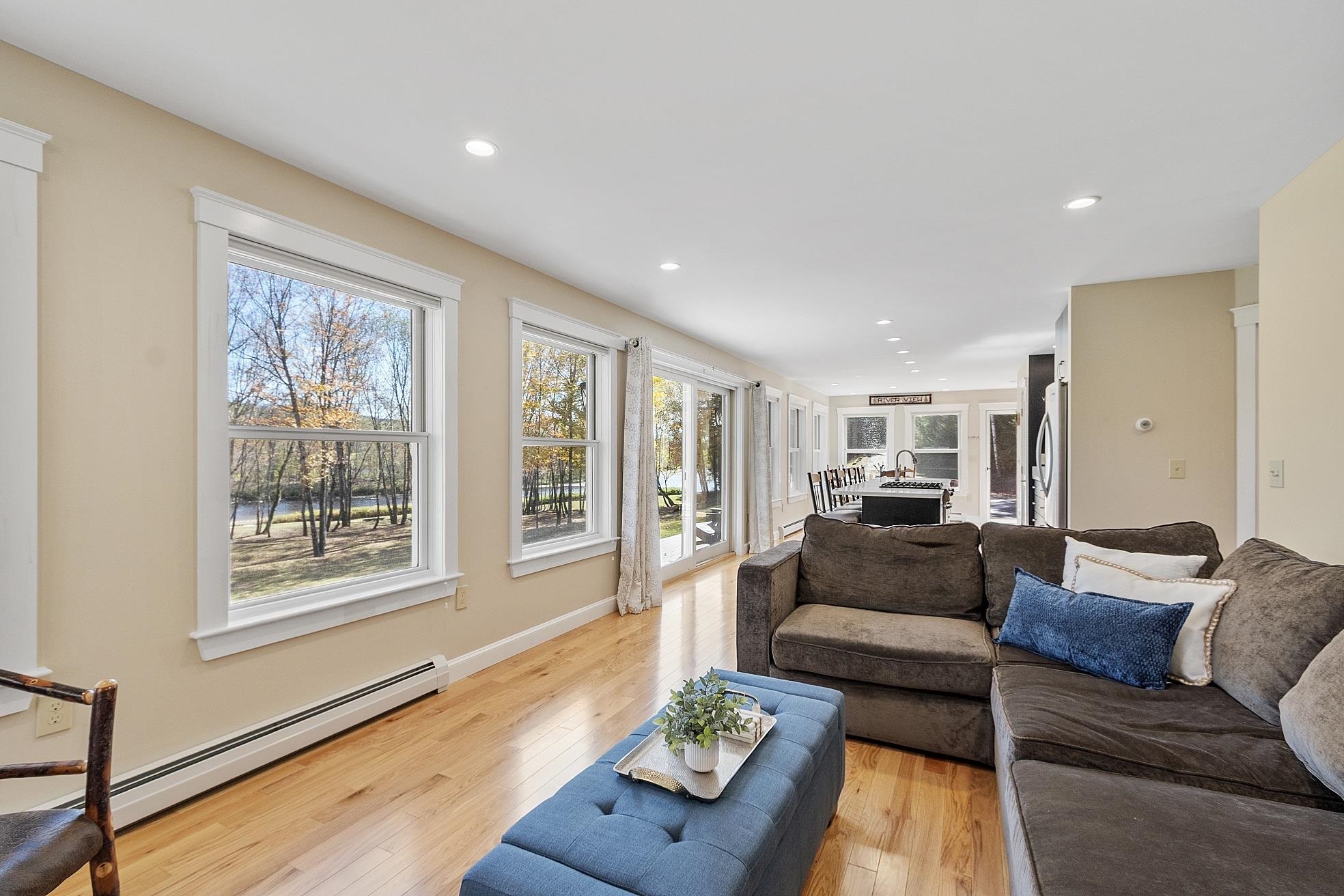 The perfect combination of a modern home and private retreat, this riverfront property on the Pemigewasset River invites you to experience life on the water â tubing, fishing, and enjoying winter sports right from your own yard with over 700 feet of pristine river frontage. Offering year-round adventure and peaceful tranquility, itâs a place where every season shines. Step inside this custom-built home and feel at ease as you take in the breathtaking river views. The eat-in kitchen, featuring an oversized island, opens seamlessly to the sun-filled living room. The main floor offers a serene primary suite with a private bath and laundry, plus two additional bedrooms and another full bathroom for guests. Upstairs, a versatile second level with a full bath and generous open space is perfect for extra sleeping quarters, a bunk area, or a game room. Step outside to your expansive wraparound deck to sip your morning coffee while overlooking the flowing river. The large detached 24 x 30 barn offers exceptional storage and a second floor, perfect for hobbies, a workshop, or additional recreational space. With beautifully maintained grounds and multiple gathering spots for bonfires and outdoor entertaining, this property captures the very best of New Hampshire living. Enjoy easy access to snowmobile trails, skiing, and some of the stateâs most scenic hiking. Whether youâre searching for a year-round home or a seasonal escape, this riverfront is where unforgettable memories are made.