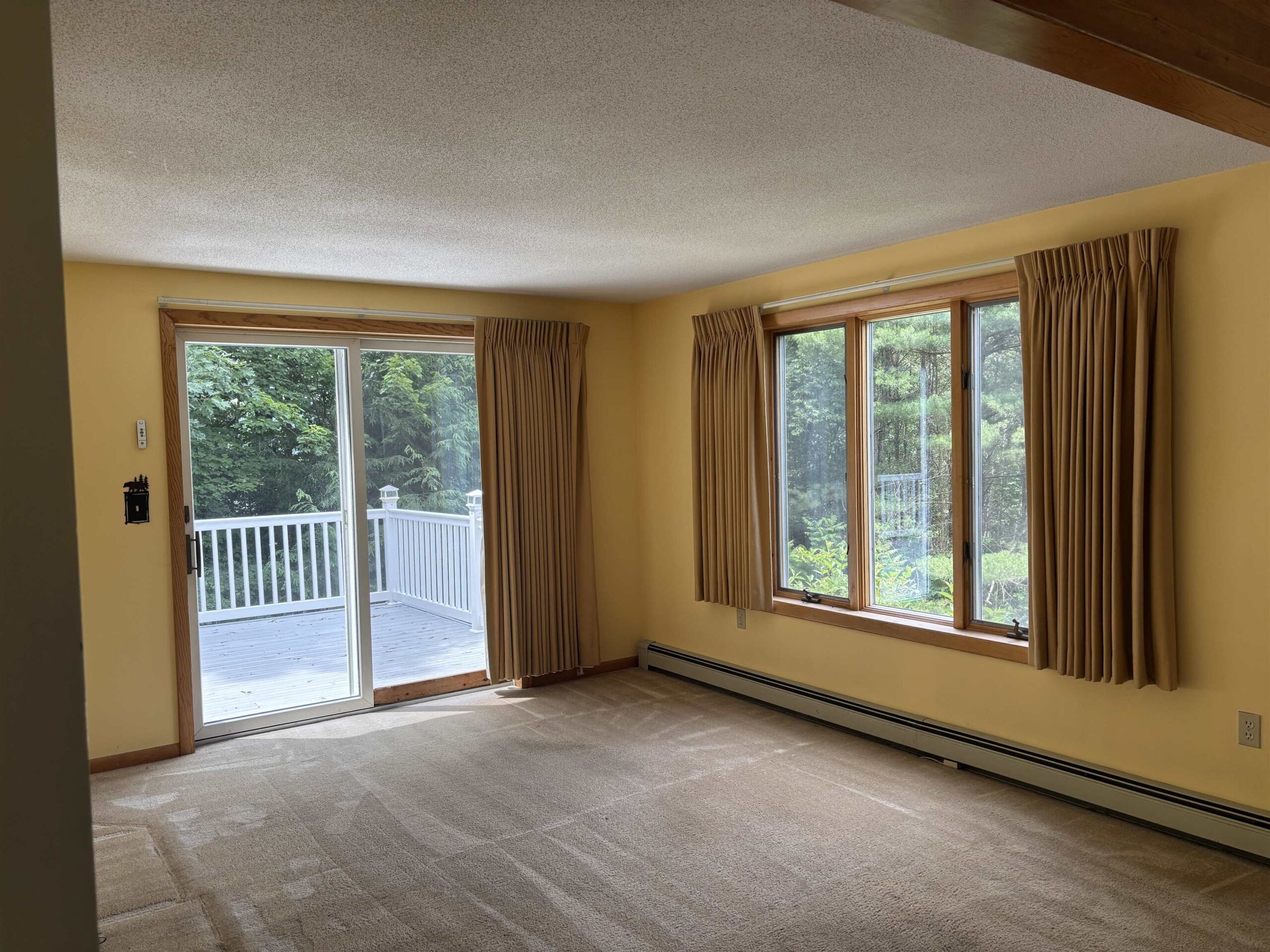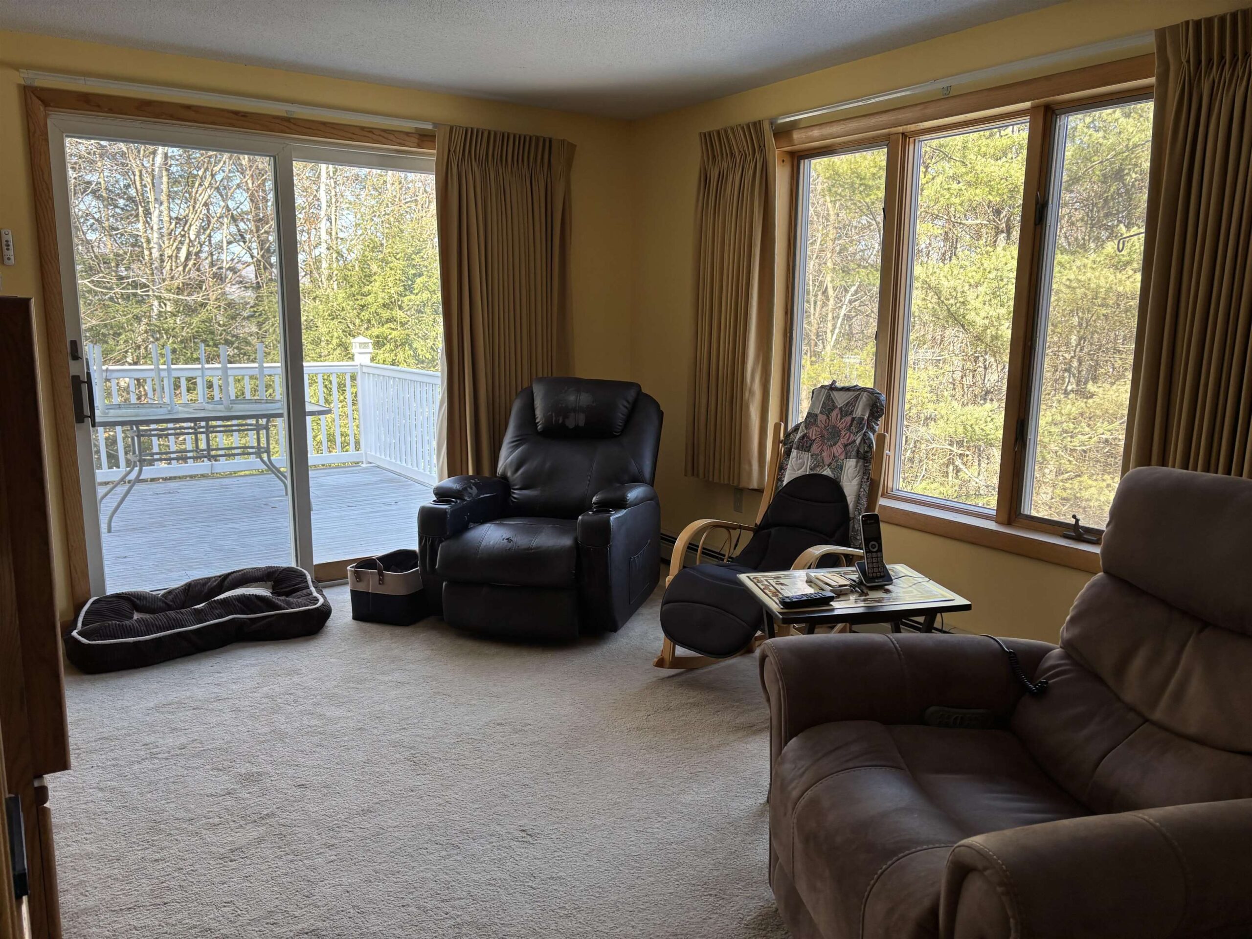 WONDERFUL CONTEMPORARY HOME in very desirable Page Hill subdivision. Nicely designed with a great layout for entertaining and comfort. The bright and welcoming foyer opens up to the spacious living room with brick fireplace (with propane insert) and cathedral ceilings. A wall of glass opens to the views of the backyard with seasonal views to the mountains beyond. There is a bedroom and full bath on this level, allowing for one-floor living or convenient home-office. Enjoy the huge Trex deck off the den area with a custom-powered awning cooling off the deck in the summer. Mini splits are installed in the living room and the primary suite. Ascend the open stairs to the second level. Primary suite with updated bath is on the right where you will find a huge walk-in closet. Take a left across the bridge balcony to two additional bedroom and a full bath. The lower level provides a finished family room with direct access to the backyard. Laundry/ craft room plus a huge workshop for all of your hobbies and crafts. There is also a half bath on this level. The yard is nicely landscaped and well maintained. Recent updates include a new roof in 2022 and all exterior painted in 2024. Easy access to route 49 in Campton. Near all of the major ski areas as well as Owls Nest golf and all recreation opportunities north and south. Come take a look at this quality home in Page Hill. Open House 7/12 10am to 2pm.