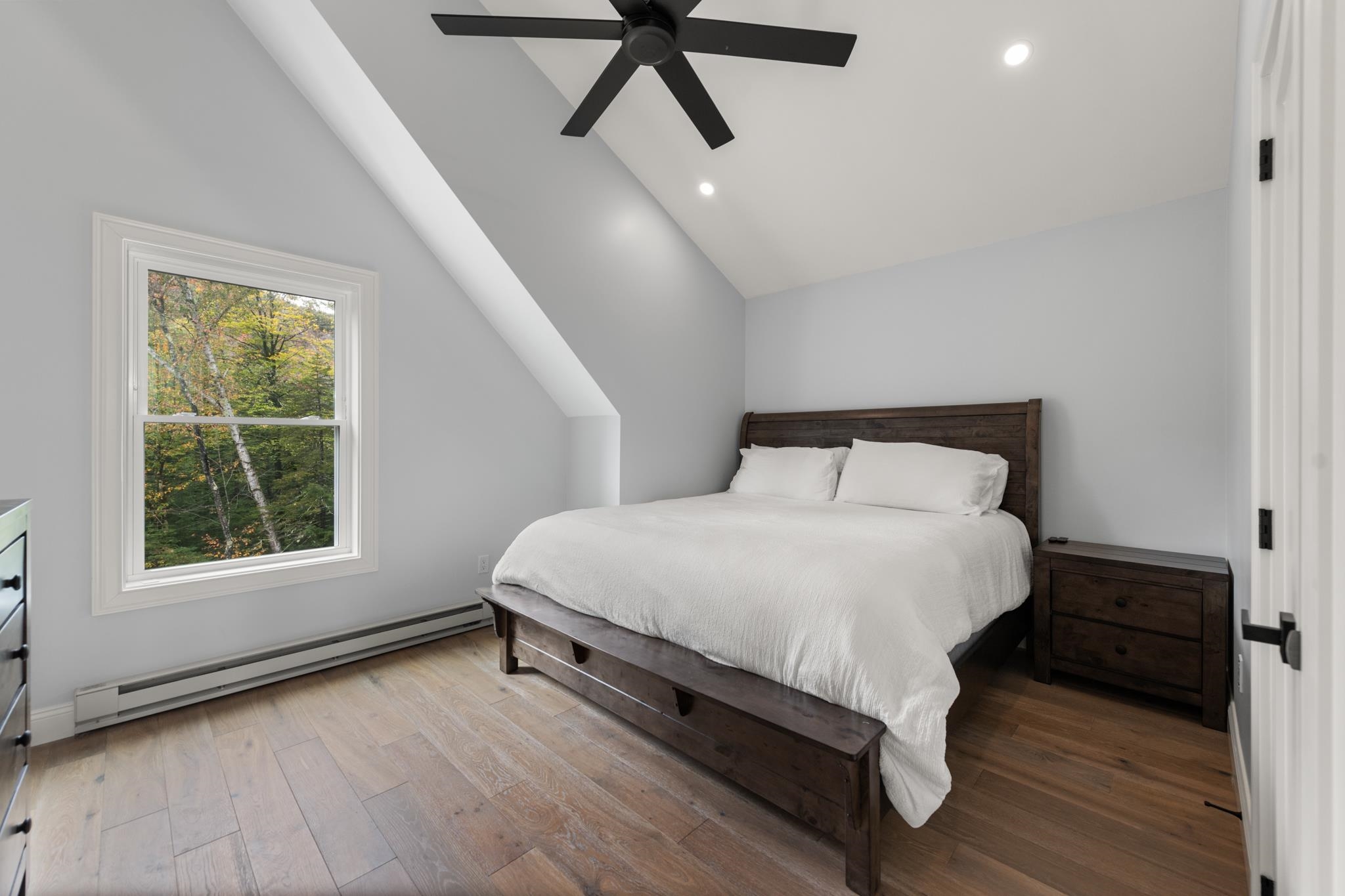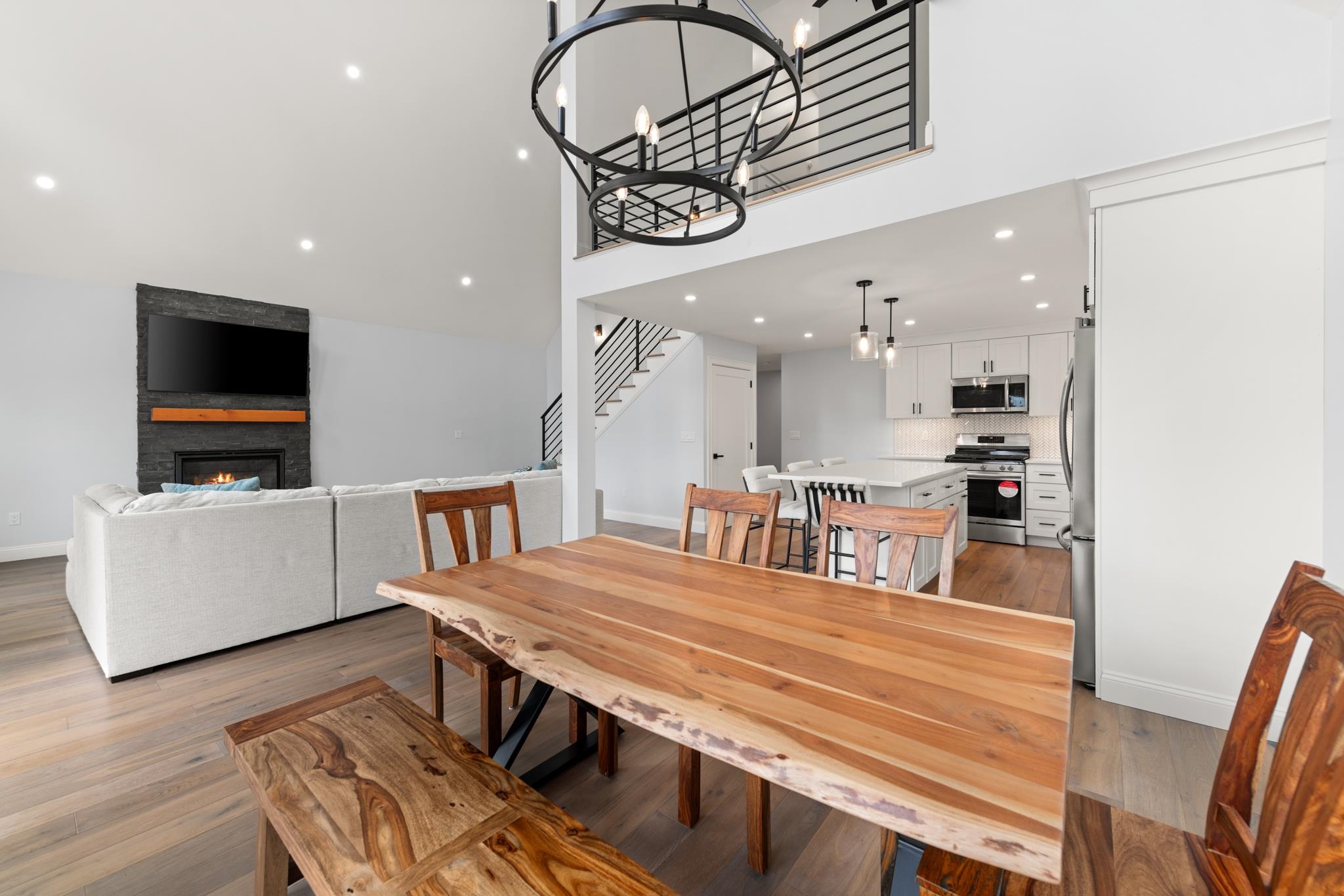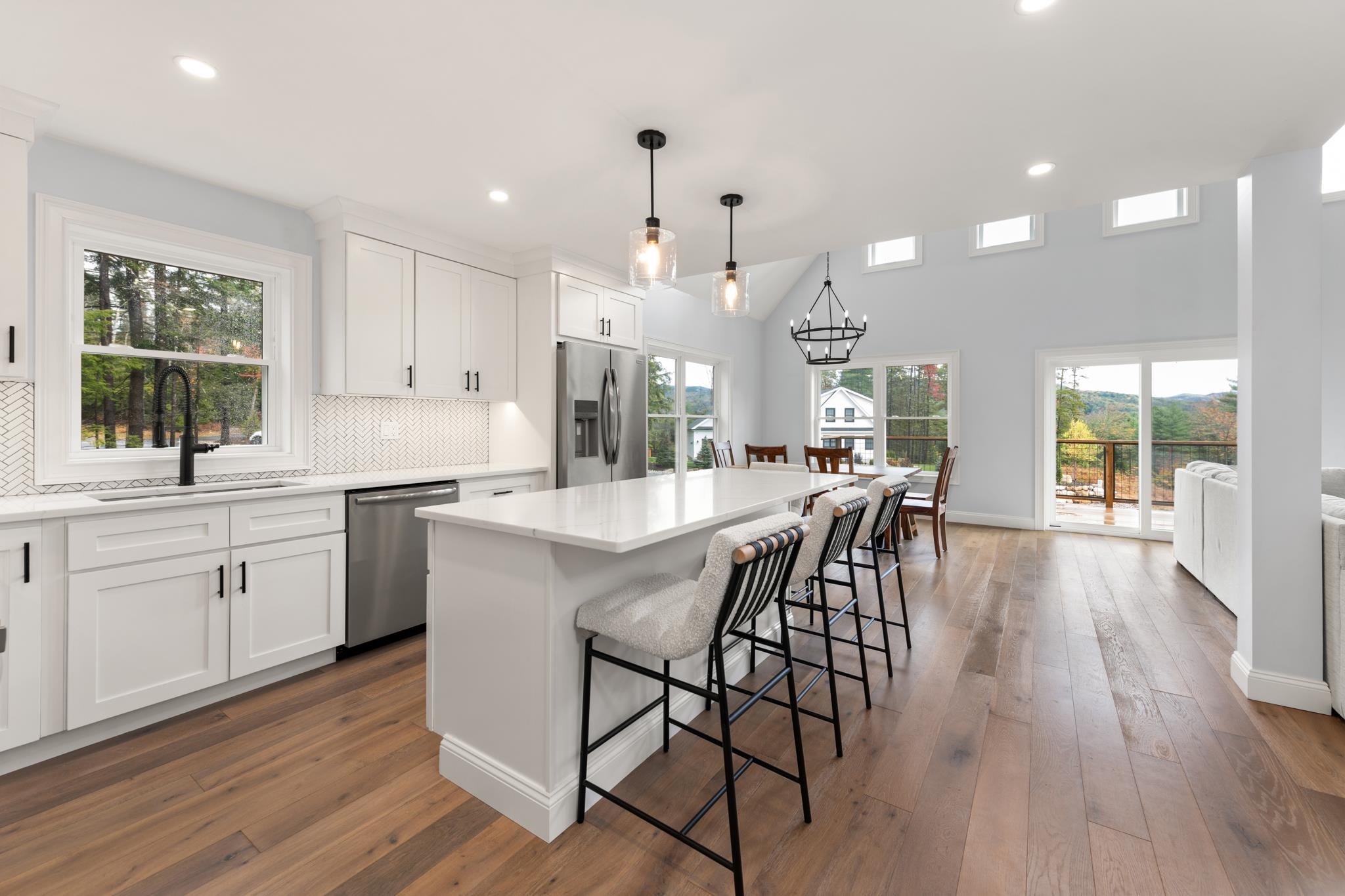 Stunning 3-Bed, 4-Bath Home with Mountain Views on Over an Acre.. Welcome to your mountain retreat! This beautifully crafted 3-bedroom, 4-bath single-family home sits on over an acre of land and offers the perfect blend of luxury, comfort, and location. With a spacious 2-car garage and over 2,000 square feet of living space, this home is ideal as a full-time residence, vacation getaway. Step inside to a thoughtfully designed mudroomâideal for storing outdoor gear after a day on the trails or slopes. The open-concept main living area is both inviting and impressive, featuring soaring ceilings, a cozy gas fireplace, and expansive windows that frame stunning views of the White Mountains. The chefâs kitchen is a true showstopper, boasting quartz countertops, stainless steel appliances, custom soft-close cabinetry, and a generous center islandâperfect for entertaining. Sliding doors off the dining area open to a large second-story deck, offering the perfect spot to enjoy morning coffee or sunset cocktails while taking in the panoramic mountain views. The main-level primary suite includes a spacious en-suite bathroom with double vanities and a custom tile shower. Upstairs, you'll find two additional generously sized bedrooms, a full bath, and a versatile loft spaceâideal for a home office, media room, or extra guest accommodations. The outdoor space is just as inviting, featuring a level, manicured backyard with a stone patio and fire pit. A tree-lined perimeter for privacy.