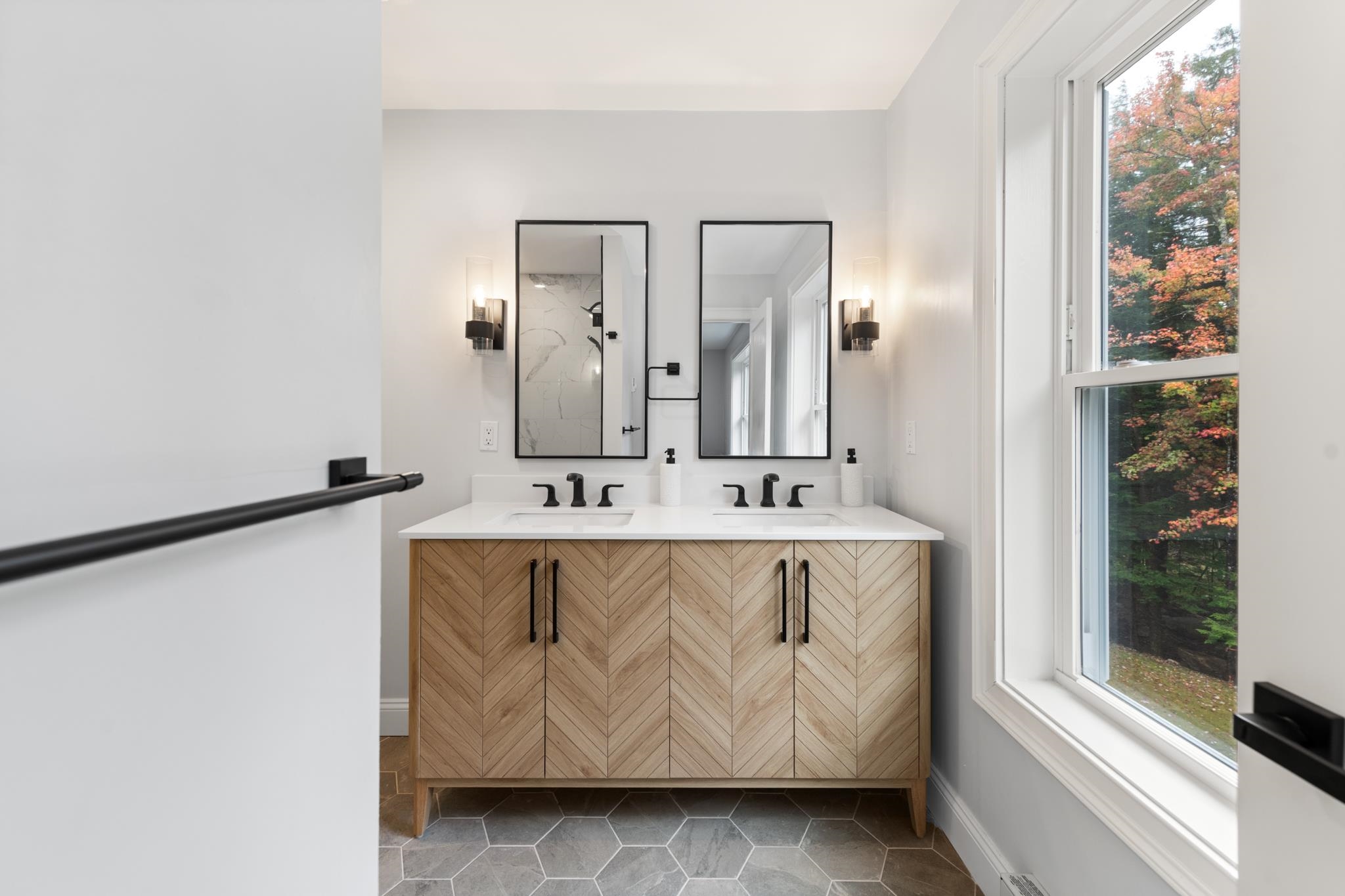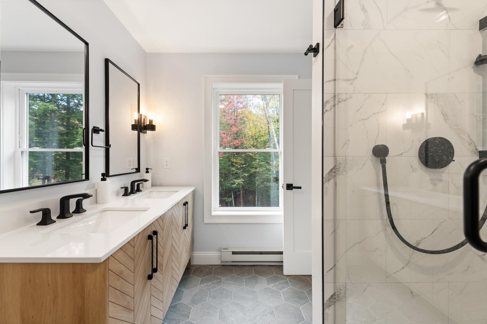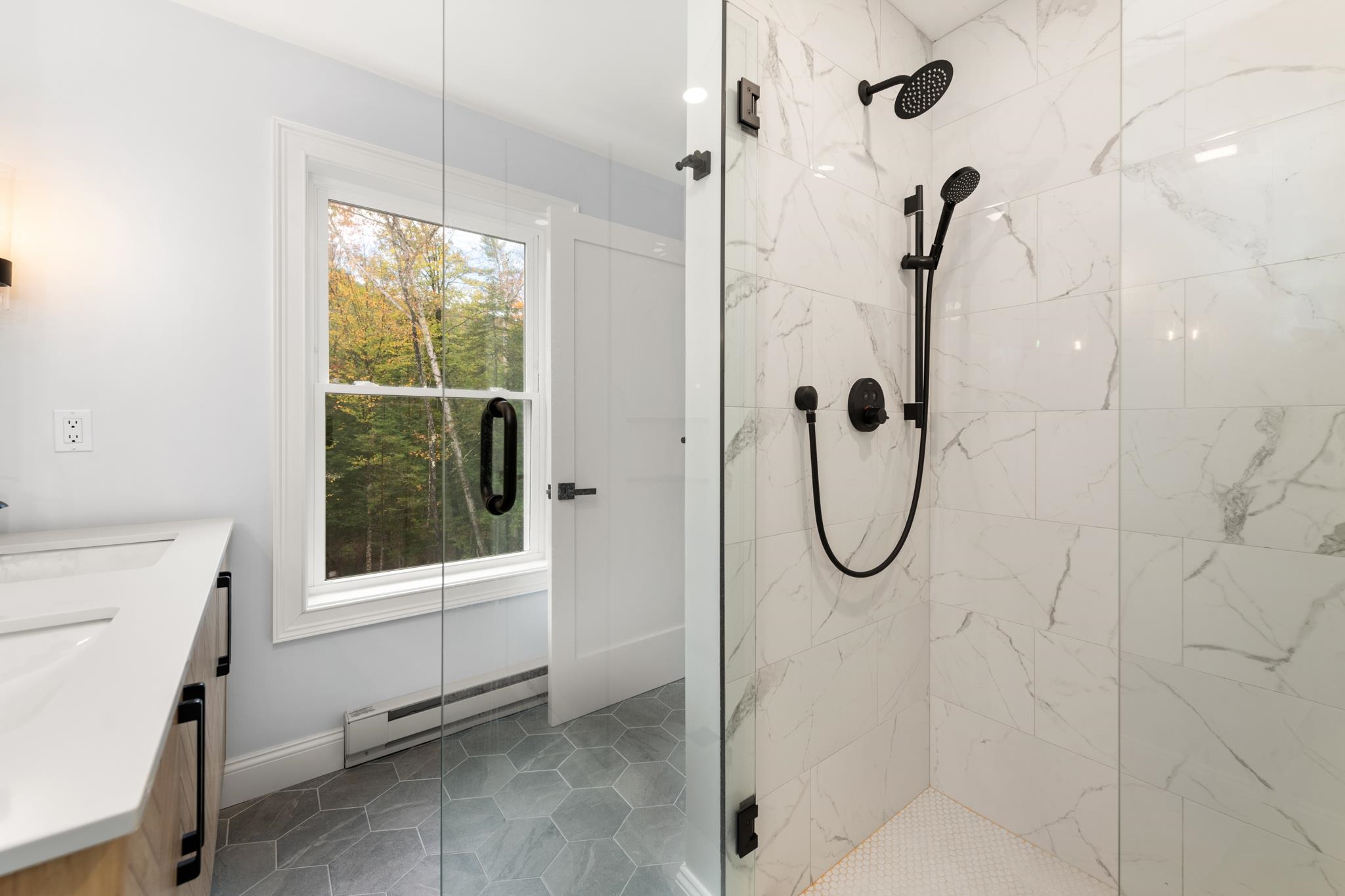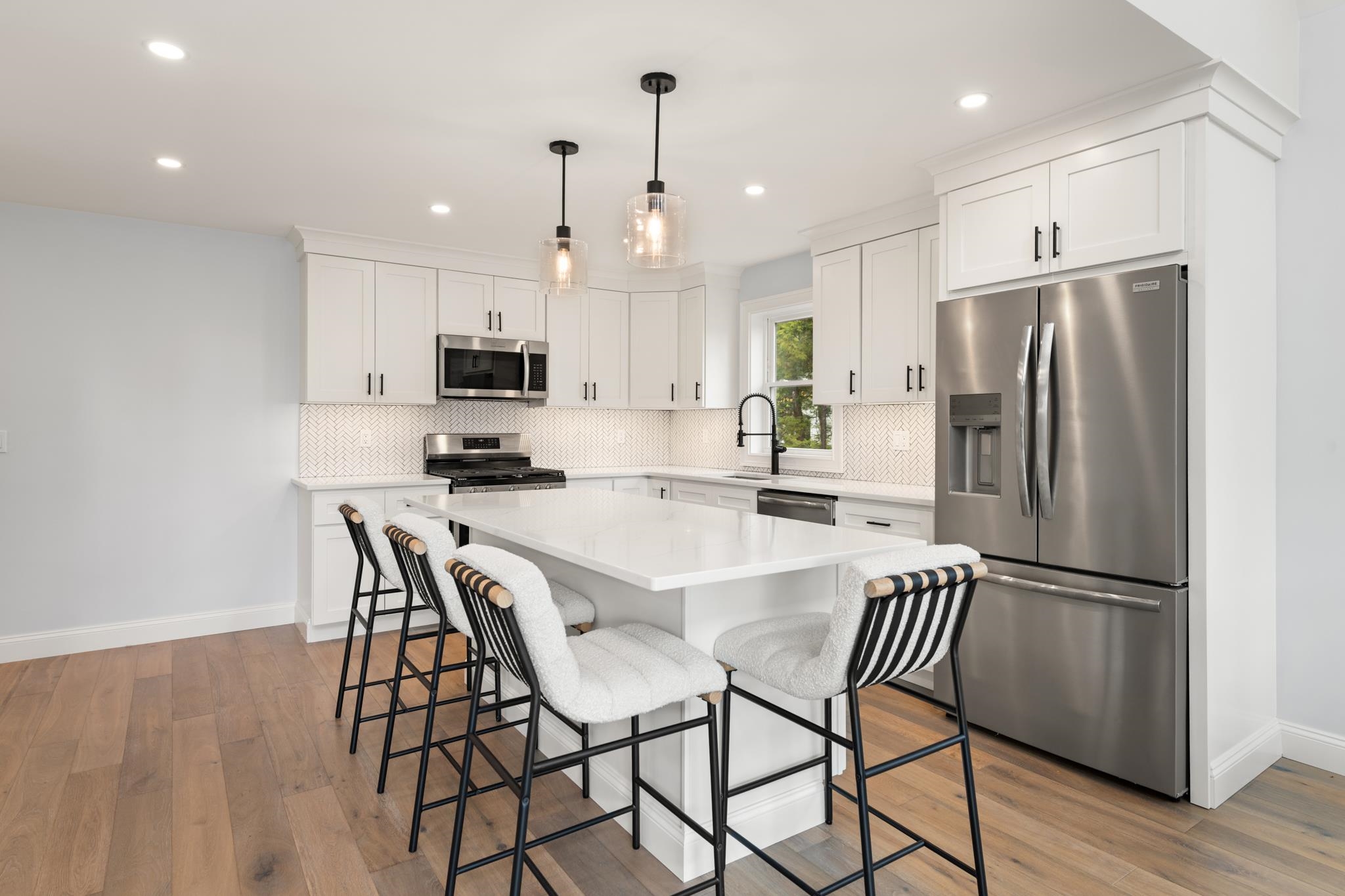 Stunning 3-Bed, 4-Bath Home with Mountain Views on Over an Acre.. Welcome to your mountain retreat! This beautifully crafted 3-bedroom, 4-bath single-family home sits on over an acre of land and offers the perfect blend of luxury, comfort, and location. With a spacious 2-car garage and over 2,000 square feet of living space, this home is ideal as a full-time residence, vacation getaway. Step inside to a thoughtfully designed mudroomâideal for storing outdoor gear after a day on the trails or slopes. The open-concept main living area is both inviting and impressive, featuring soaring ceilings, a cozy gas fireplace, and expansive windows that frame stunning views of the White Mountains. The chefâs kitchen is a true showstopper, boasting quartz countertops, stainless steel appliances, custom soft-close cabinetry, and a generous center islandâperfect for entertaining. Sliding doors off the dining area open to a large second-story deck, offering the perfect spot to enjoy morning coffee or sunset cocktails while taking in the panoramic mountain views. The main-level primary suite includes a spacious en-suite bathroom with double vanities and a custom tile shower. Upstairs, you'll find two additional generously sized bedrooms, a full bath, and a versatile loft spaceâideal for a home office, media room, or extra guest accommodations. The outdoor space is just as inviting, featuring a level, manicured backyard with a stone patio and fire pit. A tree-lined perimeter for privacy.