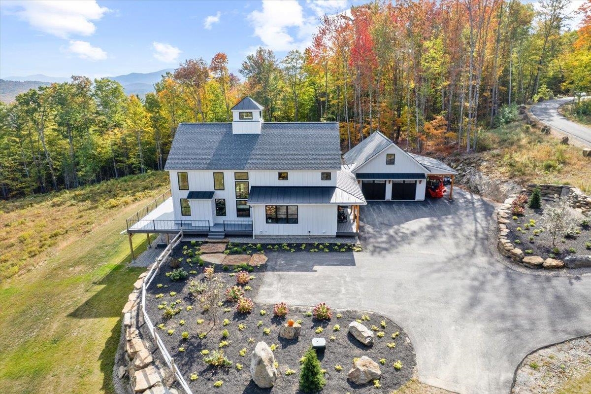 Experience Mountain Living at Its Finest. Why wait to build when this brand new custom-designed Yankee Barn stunning retreat is waiting for you now? The home's crafted with Douglas Fir beams and elegant half-lap joinery. Expansive elevated windows flood the open-concept interior with brilliant natural light. The main level includes a welcoming entrance onto the farmer's porch. Then entering the home a powder room to your right and bedroom ensuite to the left.; state-of-the-art kitchen awaits featuring a double-thickness quartz center island and marble backsplash, Thermador appliances and double wall oven. The living/dining area comes with a warming stone fireplace and space opening to a generous deck showcasing breathtaking mountain views. Upstairs, you'll find the primary ensuite with a private office and luxurious bath. The lower level is plumbed and ready for a future bathroom, bedroom, and family room with walk-out access to a private back yard and space for additional gardens. Outdoor enhancements include lush gardens, stonework, private patios and a two-bay garage with loft all on over 20+/-AC. Located on prestigious Blake Road; once home to the historic Peckettâs Inn as the summer retreat to many wealthy visitors and Hollywood elite. This property offers timeless charm in the heart of Sugar Hill. You'll be close to all the White Mountains have to offer. Great opportunity! Land in CU.