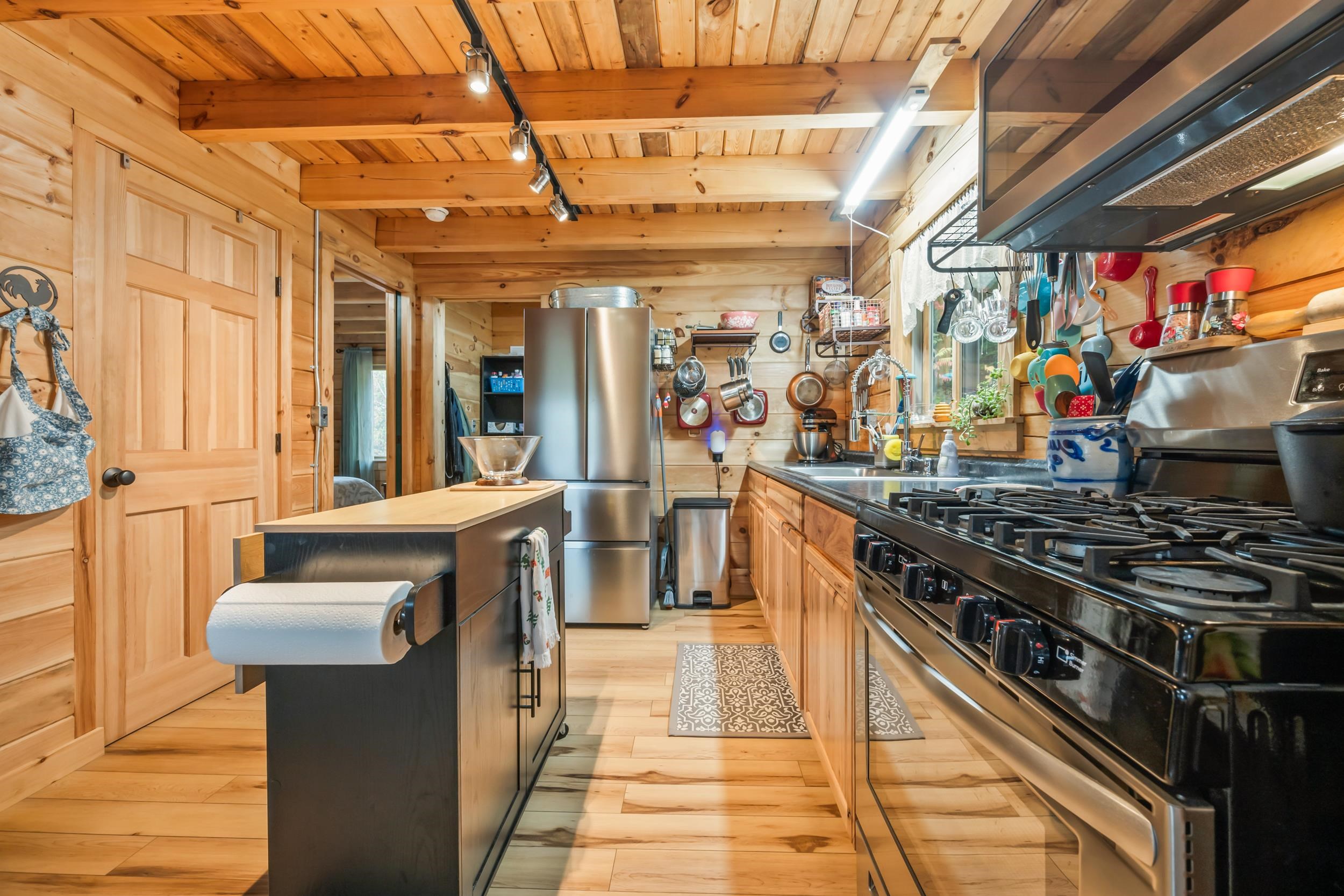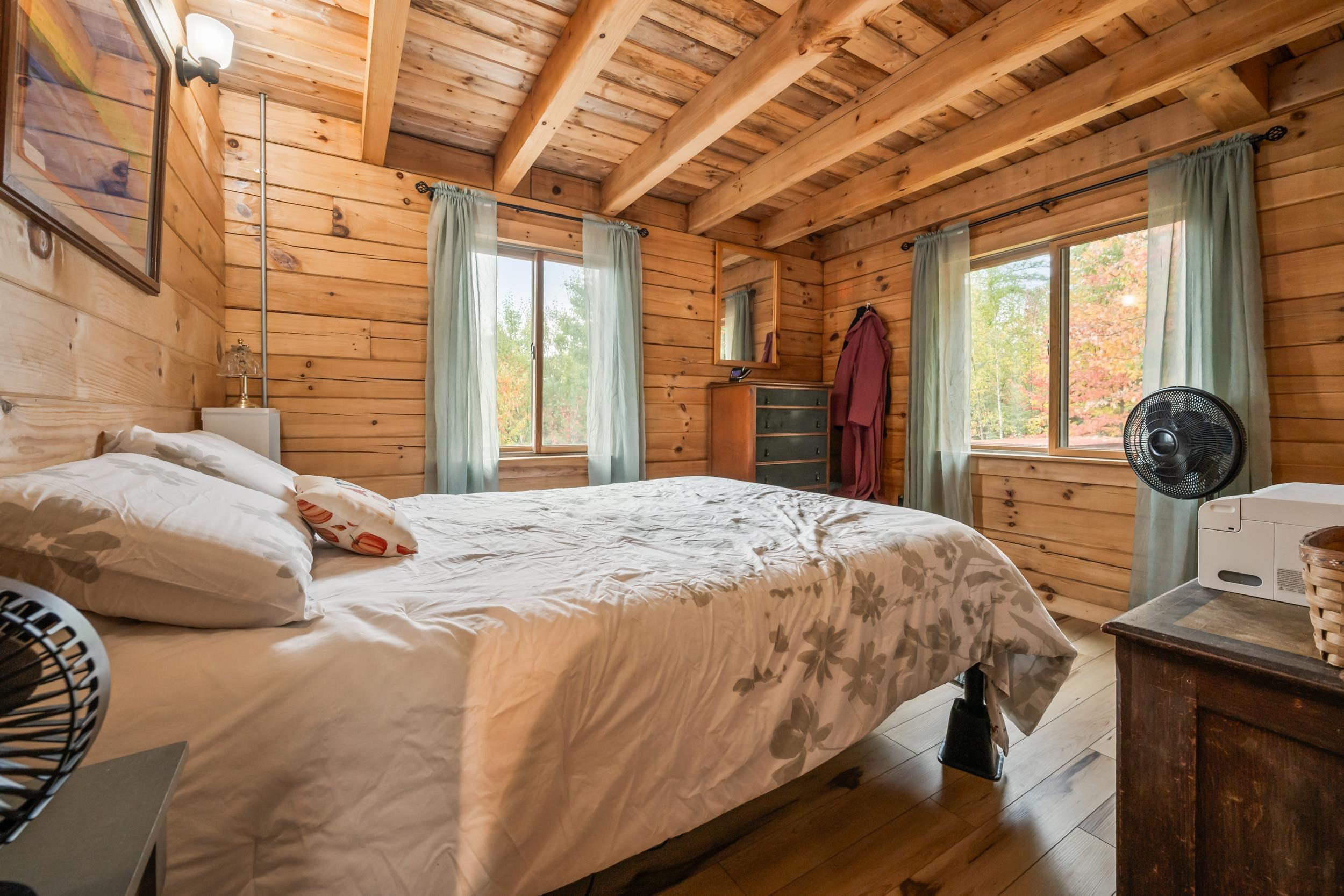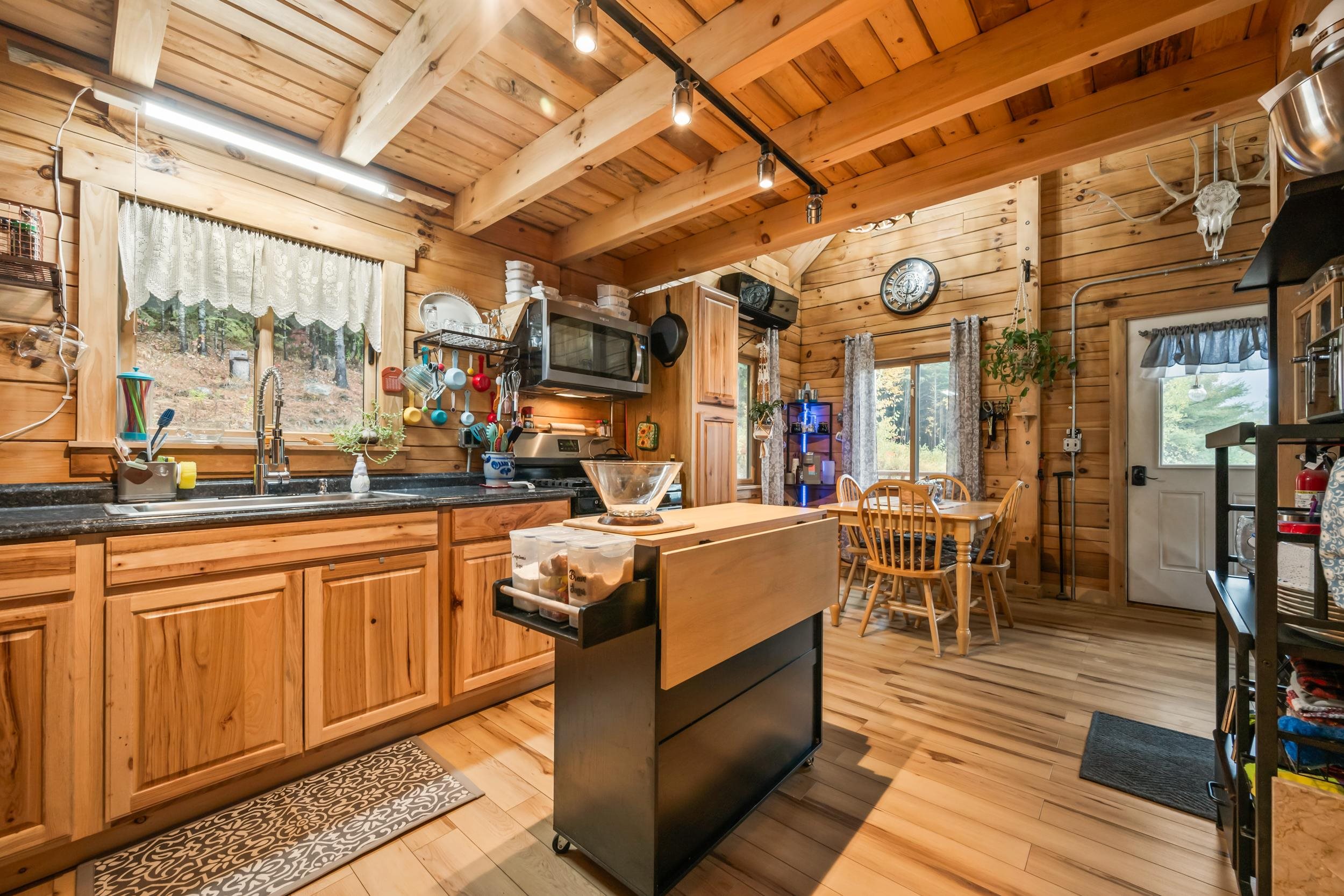 FULLY FURNISHED 2 bedroom log home on 5.45 +/- acres offers convenience and privacy all year long! This 2022 home features a covered porch where you will spend many summer evenings. Open concept main living level has the dining area lead into the compact kitchen which has a lot of cabinets for storage and a large pantry as well. First floor bedroom and 3/4 bath with incerating toilet make this a great single-level home. Living room which has the pellet stove features cathedral ceilings up to the loft where the second bedroom is. The basement is accessed from the outside only and is currently unfinished but could be finished off into more living space or continue to be used as storage/workshop space. The house being just under 900+/- square feet, this home is cozy, easy to maintain and easy to operate! Ideal for someone just starting out or someone who wants a cabin in the woods for a White Mountain retreat. 2+/- miles back to Main Street for shopping, dining and entertainment and a shorter distance to Meadow Street for your big box stores and access to I-93. Minutes to Littleton Regional Healthcare and Moore Dam Reservoir for summer fun, this location is perfect for everything!