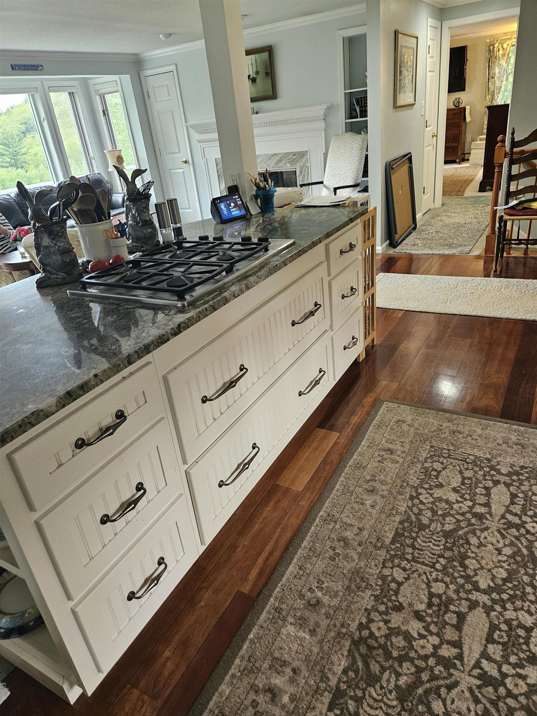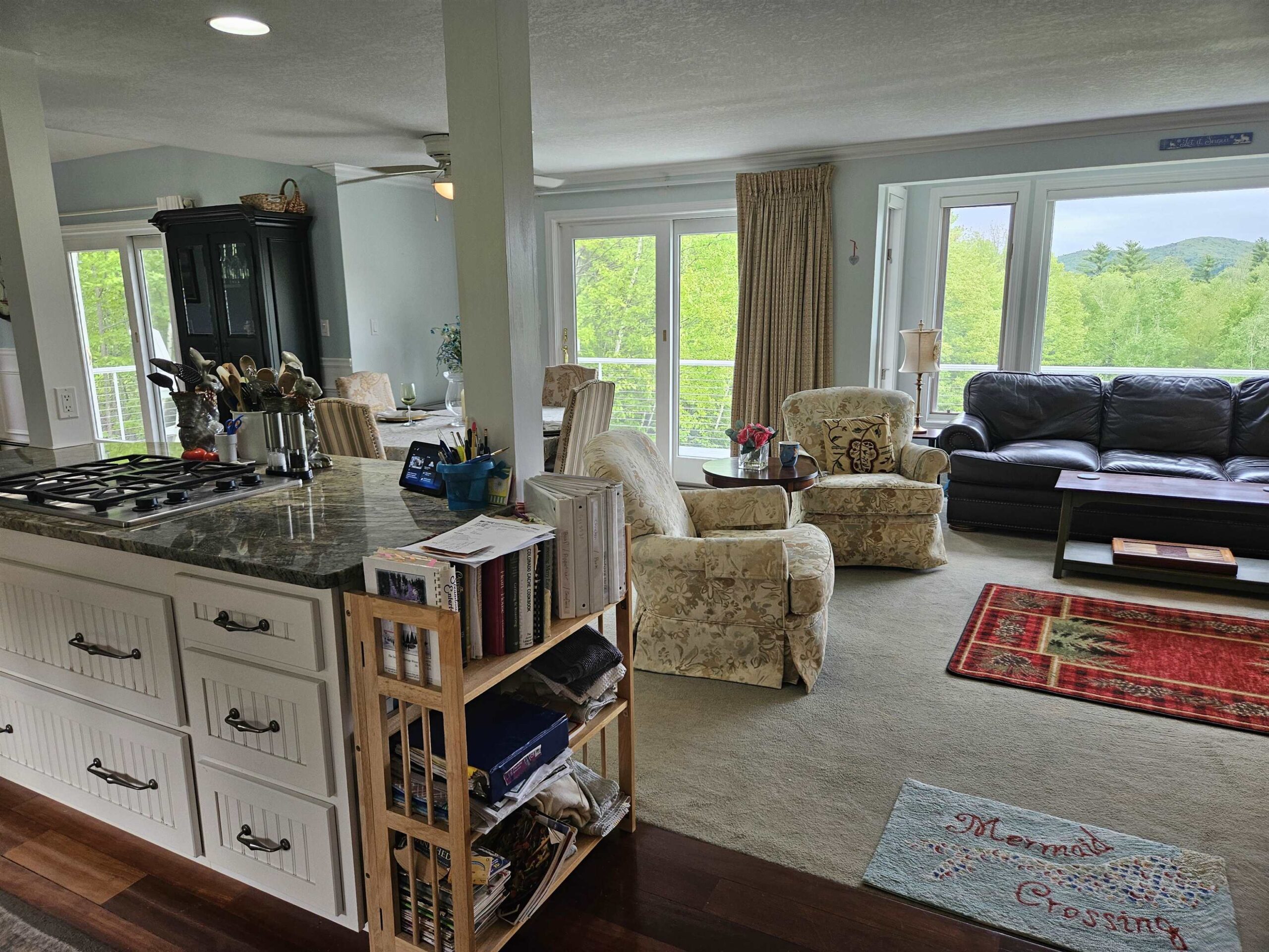 Estate quality home in NH White Mountain home,in desirable Page Hill Estates. Located 5+/- minutes to I-93 in Campton NH. This lovely home comes w/ 6.26 private acres, its own sizeable spring feed pond, spectacular mountain views, Perennial & herb gardens throughout the grounds, open sprinkler irrigated lawn lined by White birch trees, & rock walls. Winding paved driveway w/ hedges leads into the home makes for a private location Too many features to name: 3500 square ft of finished living 3 lg suite style bedrooms, massive great room w/Chef inspired kitchen inc white shaker cabinets w/tons of built ins, upscale appliances:gas stovetop double ovens, dishwasher, double sink, granite counters, open concept for great entertaining space, fireplaced living area & breakfast area leads to formal dining(but could be music/pool table room+), Massive family rm w woodstove, theater/library rm, loft, large decks(one w/hot tub),2 car attached garage w/2nd story storage, drilled well, private septic, first floor master w/oversized custom tiled steam shower, 2nd- 3/4 bath has 4 foot tile shower, a full bath & 2 half baths, laundry, minisplit in master suite, new very efficient heating system, cathedral ceiling, entry room, 6-8 person hot tub, underground utilities,500 gallon gas tank underground, security system & ton of glass overlooking views, full house description in Documents. Page Hill Estates neighborhood - all quality homes that owners take pride in well cared for neighborhood .