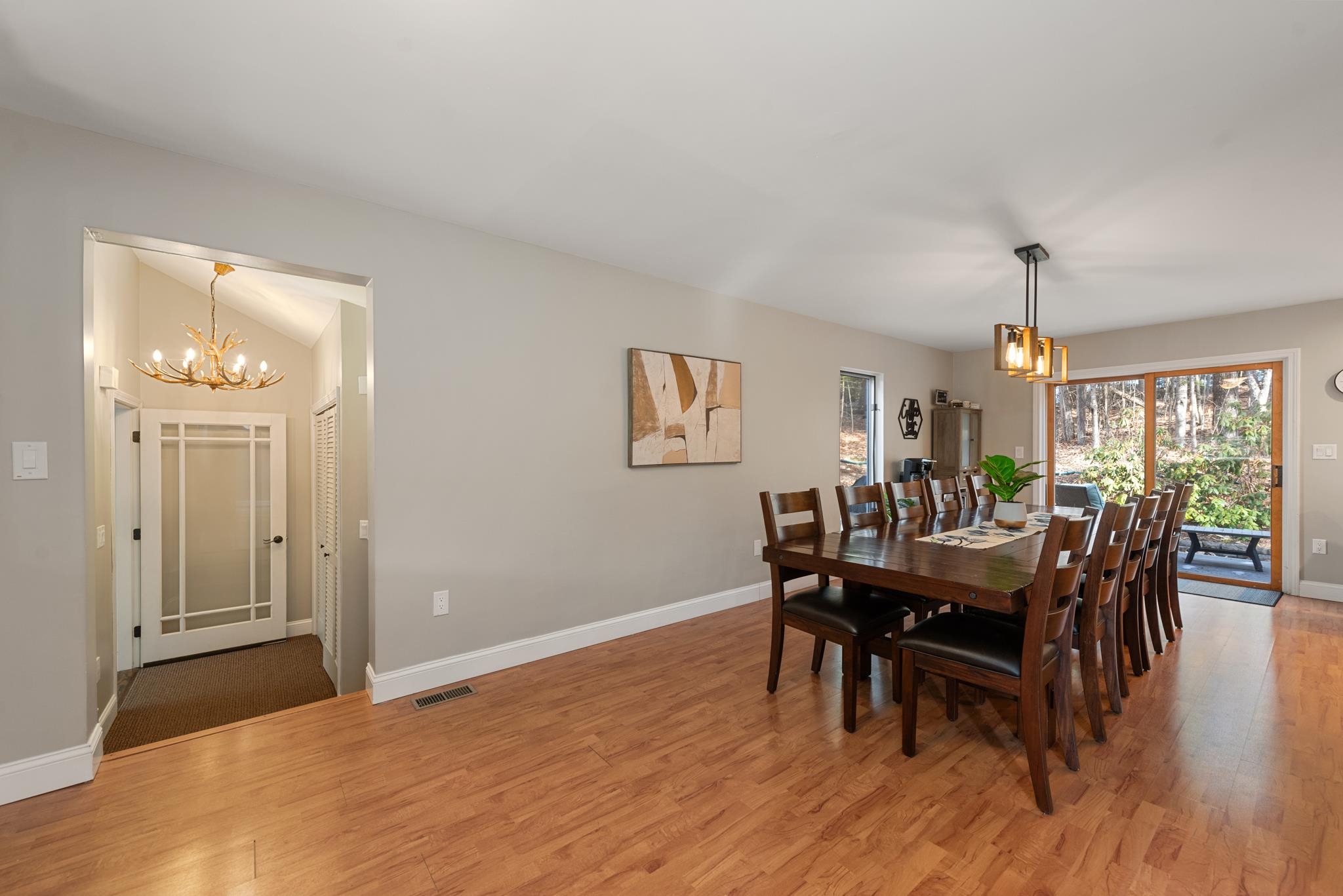 Recently Renovated 5 BR, 3.5 Bathroom Contemporary home in the White Mountains! There is plenty of room with a first floor primary suite and a second floor primary suite. Located in a quiet neighborhood, the home is 2,856 square feet and it has an attached 3 car garage on just over an acre sized lot. All Bathrooms and the kitchen have been renovated. Kitchen renovations include new granite countertops, new stainless steel stove/oven, refrigerator, and range hood. The interior has been completely painted, new floor moldings throughout, new light fixtures and electrical outlets and light switches, new in-wall home audio speaker system, new handrails, new door and lock hardware, new dining room chandelier, shiplap accent wall. Exterior updates include a rebuilt deck incorporating a deck cable railing system and a new firepit. Recently used as a vacation home and vacation rental, the home is ideally located along the 93 corridor, a prime jumping off point for the White Mountains with easy access to Loon and Cannon Mountains and Littleton to the north, and easy commutes to Plymouth, Tilton, and Concord to the south.