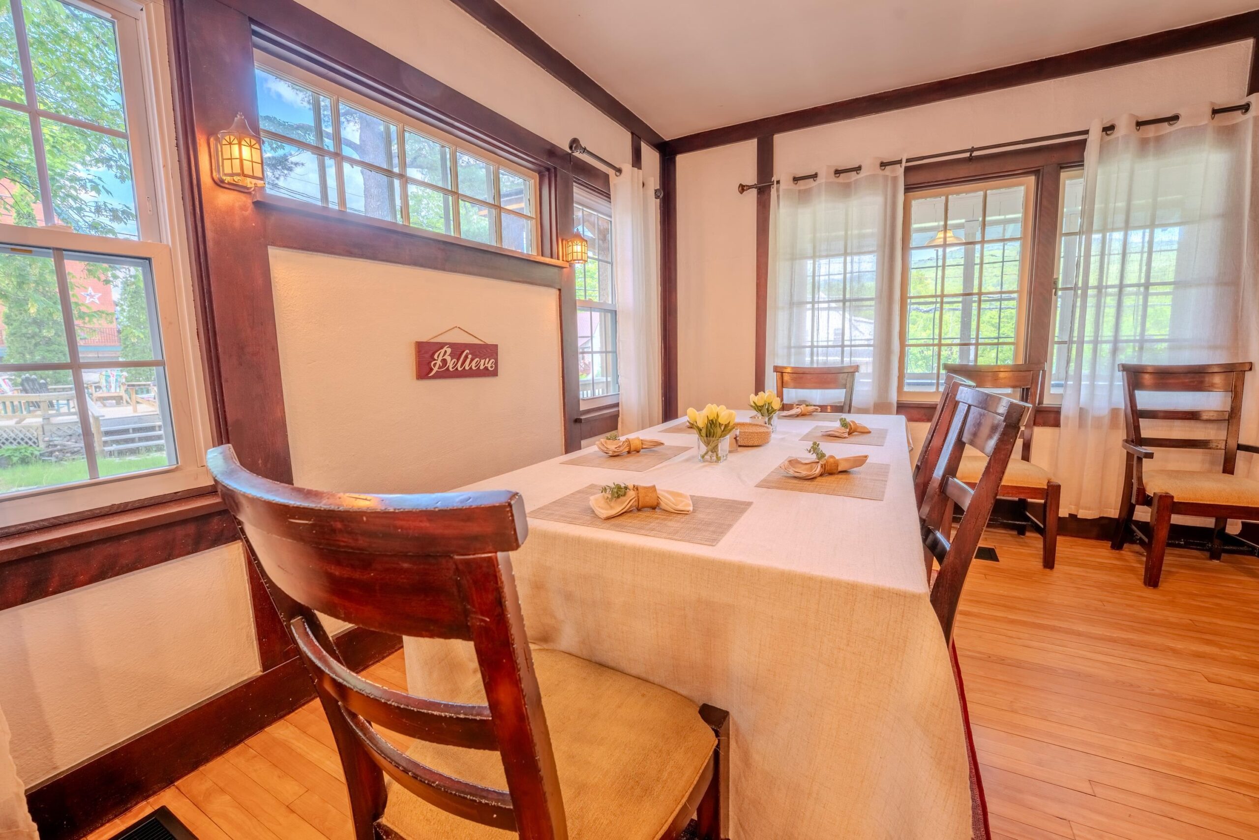 The Wilderness Inn is a truly remarkable historic property in the heart of downtown Woodstock, NH. Operated as an inn for decades, it has recently undergone an extensive renovation that blends modern efficiency with timeless character. Updates over the past year include new heating and central A/C, windows, flooring, plumbing, electrical, insulation, a reimagined kitchen with new appliances, and much moreâno expense was spared. Offering river frontage, mountain views, and the ability to comfortably accommodate 18+ guestsâeach with their own full bathroomâthis property is unlike anything else in the region. Step into the chefâs kitchen with custom finishes and a Viking dual-fuel range, or relax in the main living area framed by exposed beams and gleaming hardwood floors. Beneath its historic charm, state-of-the-art systems ensure comfort year-round, including a high-efficiency furnace with central A/C running through brand-new ductwork. Whether reimagined as a private residence, investment property, or continued hospitality venture, this 112-year-old treasure stands ready for its next chapter. Come experience its unmatched beauty and potentialâyou wonât find another property like it.