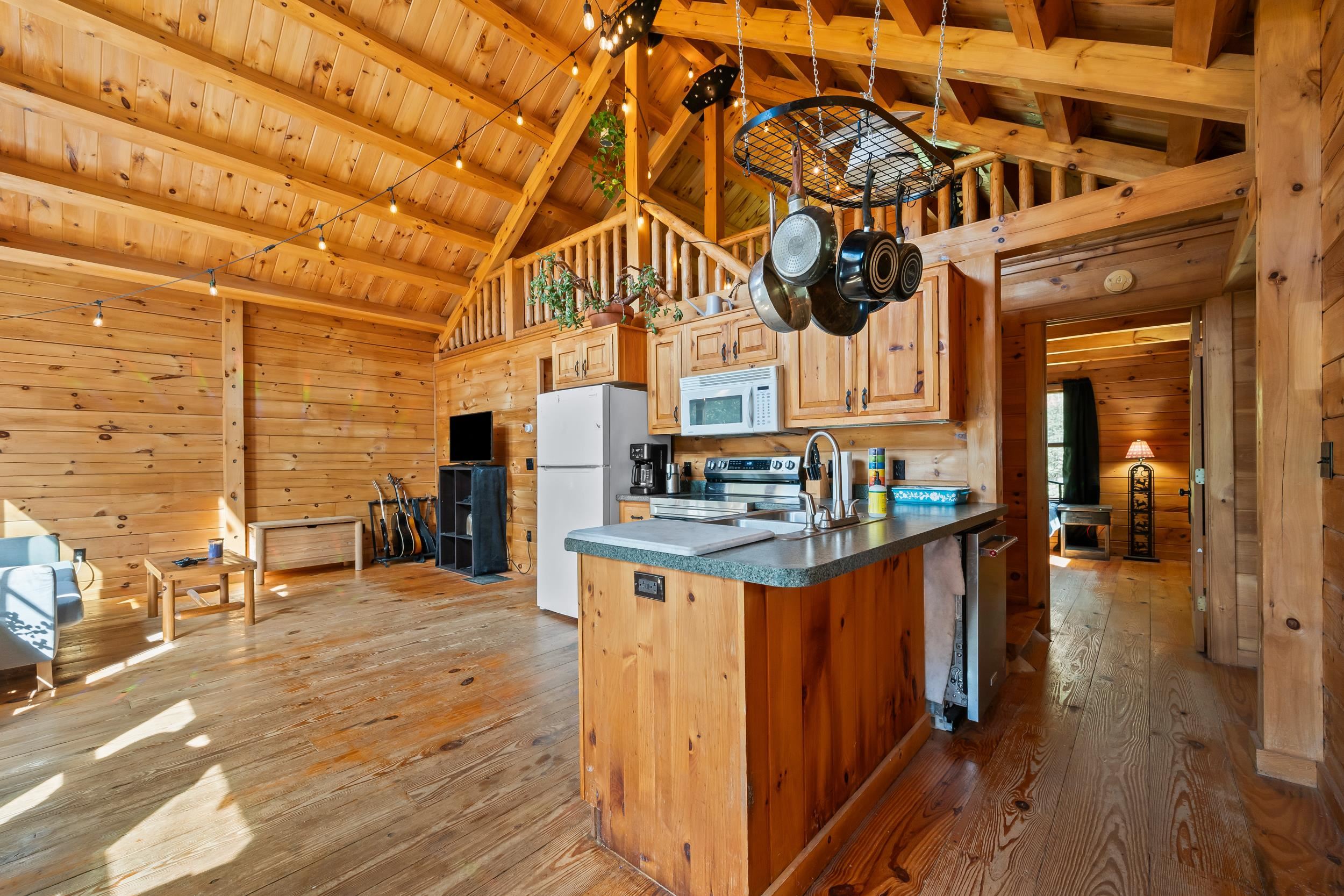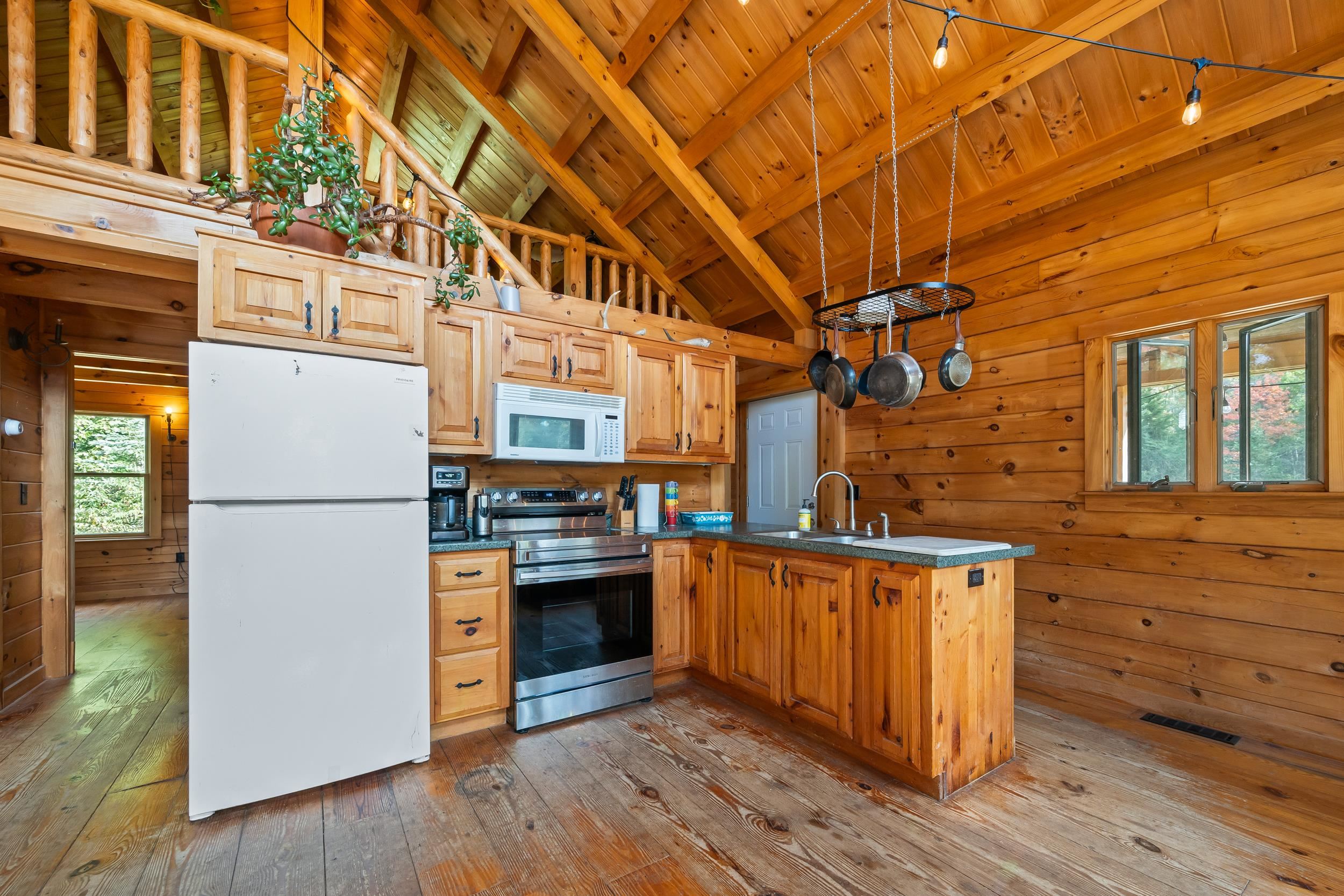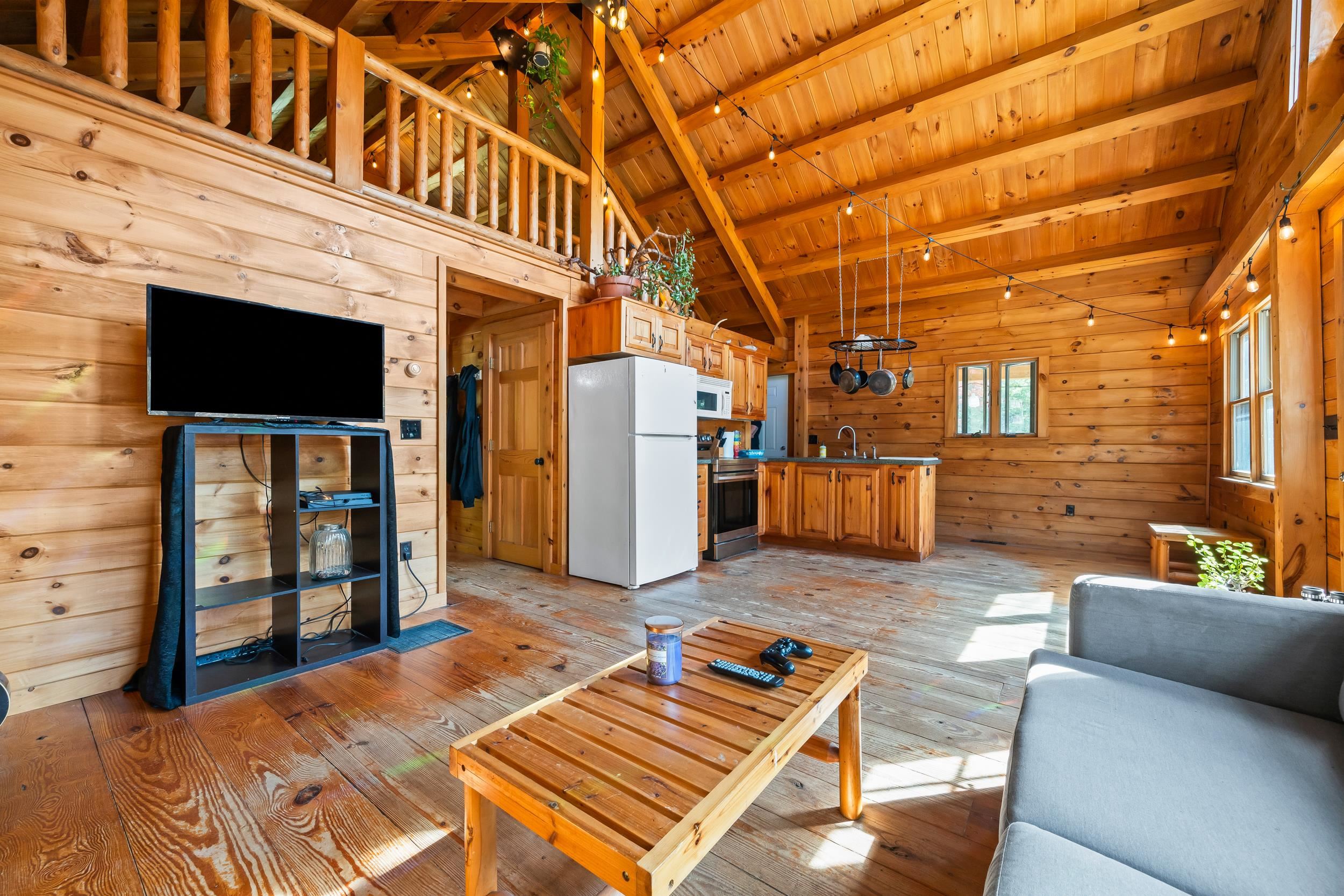 2 bedrooms plus a large loft log cabin minutes to Cannon Mountain and Francoina Notch State Park on 8+/- acres! Open concept kitchen/dining/living area with large windows lets the natural light pour in year-round. 2 bedrooms and a remodeled full bathroom on the main level makes this a single-level home if needed. A large loft could be used as another bedroom or an in-home office or workout room - whatever additional space you may need. The full, unfinished basement is great for storage and connects to the 1-car garage. There is a large deck where you'll enjoy warm summer days overlooking the private yard. You are in the heart of the outdoor activities the White Mountains have to offer in this location, and you can be on the mountain in just minutes! Also, minutes away is the Profile Golf Club and many hiking and biking trails as well as Echo Lake State Park. This location is perfect for year-round activities! This would make a great starter home or that perfect vacation/ski home.